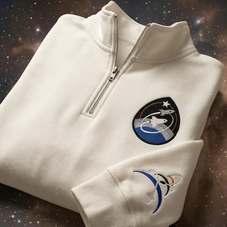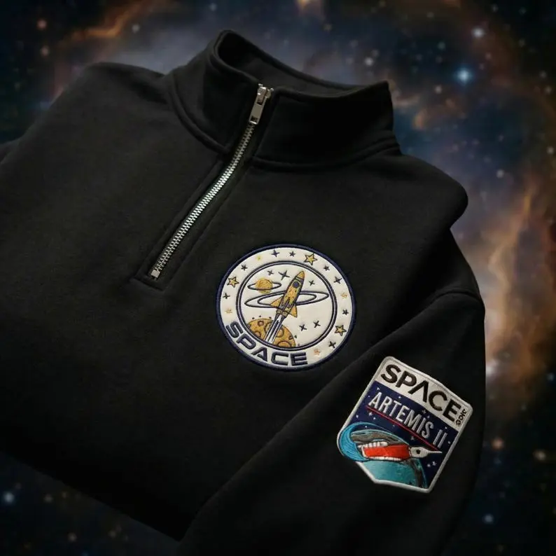 Embroidered Artemis 2 Mission Logo Quarter Zip Sweatshirt Pullover Retrun To The Moon, Unisex Embroidery Quarter Zip Sweater