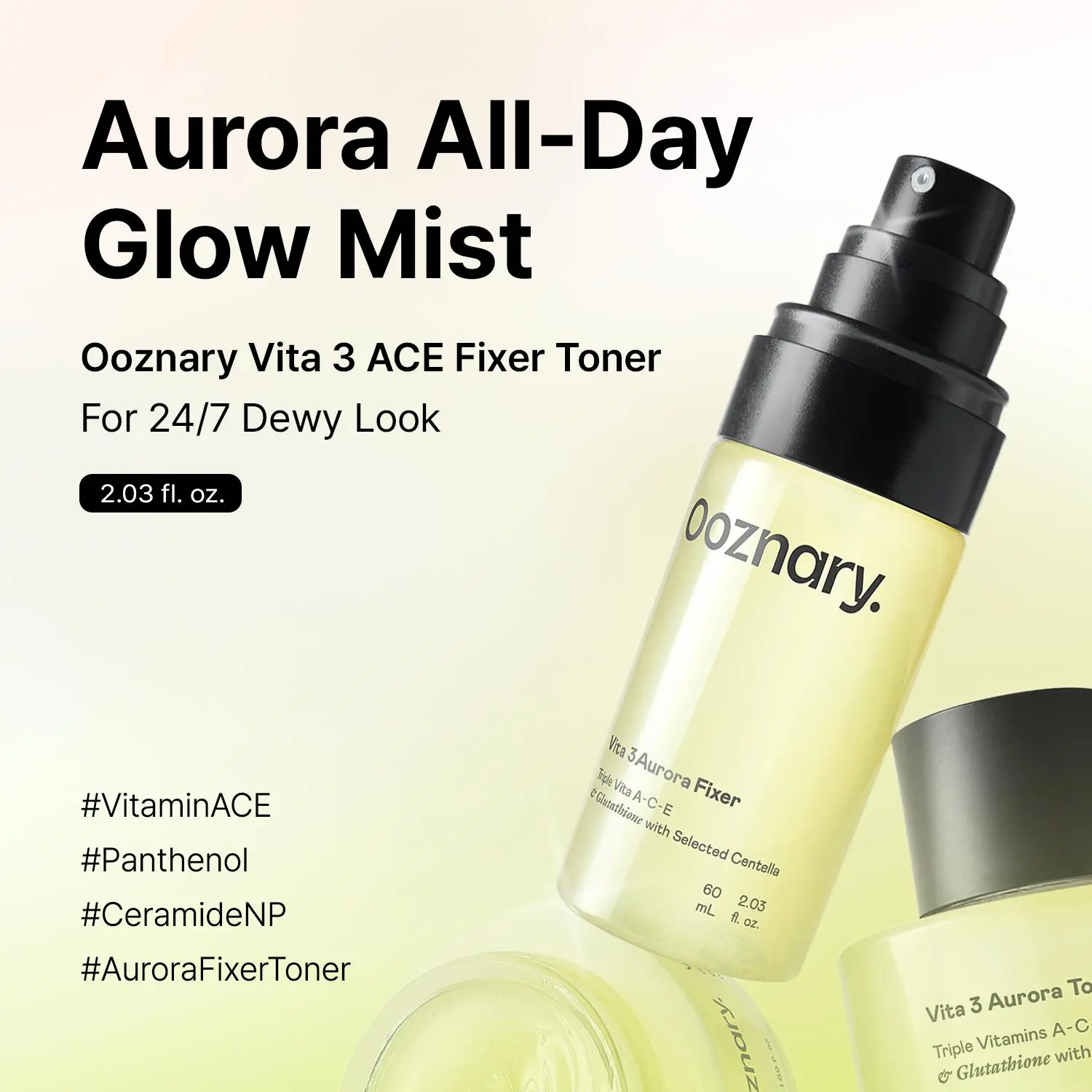 Ooznary Vita 3 Aurora Fixer Toner with Vitamin ACE and Triple Centella All-in-One Mist & Setting Spray | Korean Skin care | 2.02 fl.oz 60ml(Specification):Default