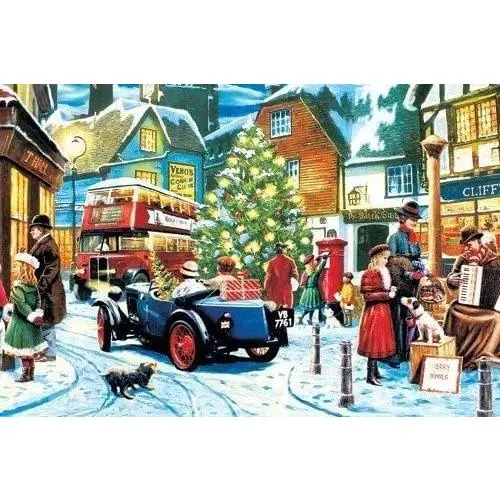 This is a mini puzzle with tiny pieces. While it is small, it can take an afternoon to assemble. This puzzle is great for those that enjoy puzzling, but don't want to sacrifice a whole table top for assembling a puzzle. This one doesn't take up much space, but will still provide you with hours of entertainment. It comes with a set of plastic tweezers that you will need to assemble the puzzle. Christmas Streets depicts a bustling town preparing for the holiday season. In this miniature die-cut puzzle, the streets are decked with lights and Christmas cheer. Each piece is small enough to fit on the tip of your finger, making this the ultimate challenge to test your patience. Makes a great stocking stuffer.