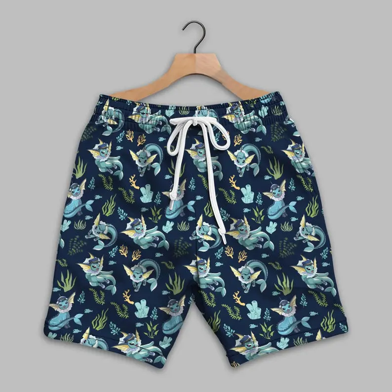 vaporeon hawaiian beach shirt and shorts set in classic hawaiian style with refreshing ocean blue tones.