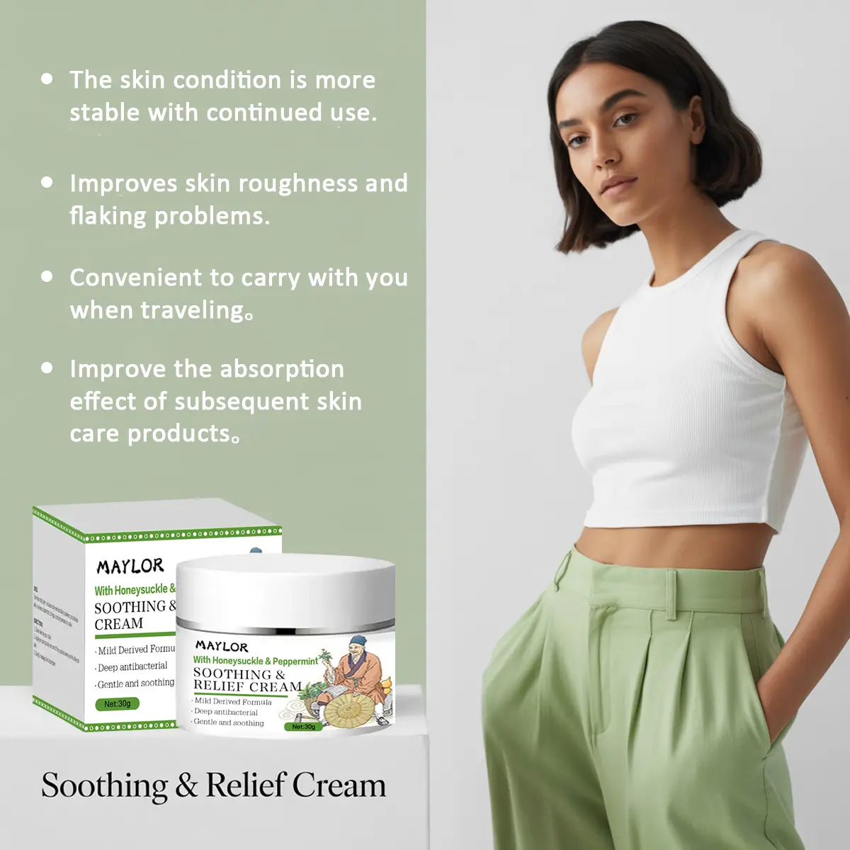 Discover the perfect companion for your skin care routine! This herbal moisturizer is designed for sensitive skin, offering lightweight hydration and comfort. It's a refreshing daily skin care solution, ensuring your skin feels nourished and cared for. Each bottle contains 30g (1.06oz) of the soothing relief cream, ideal for those seeking a simple yet effective skincare product.