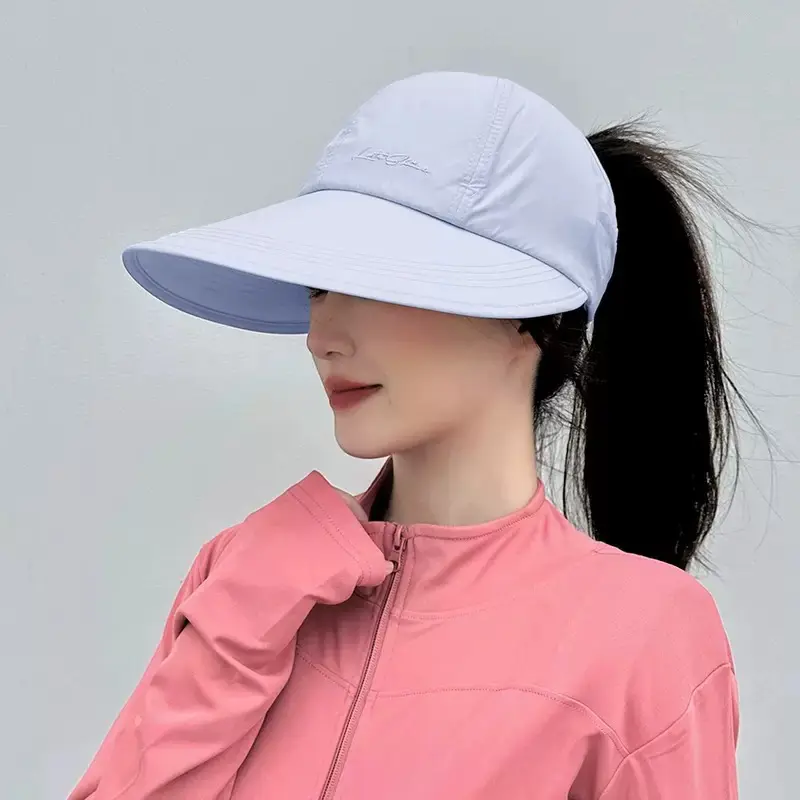 Open Top Ponytail Sun Hat , Wide Brim UV Protection Visor Cap, Quick Dry Outdoor Beach Golf Hat