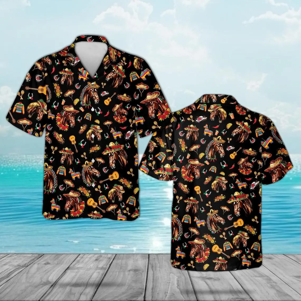 Derby de Mayo Hawaiian Shirt, Personalized Horse Racing Fiesta Button Down, Mexican Celebration Equestrian Aloha, Unique Festive Sports