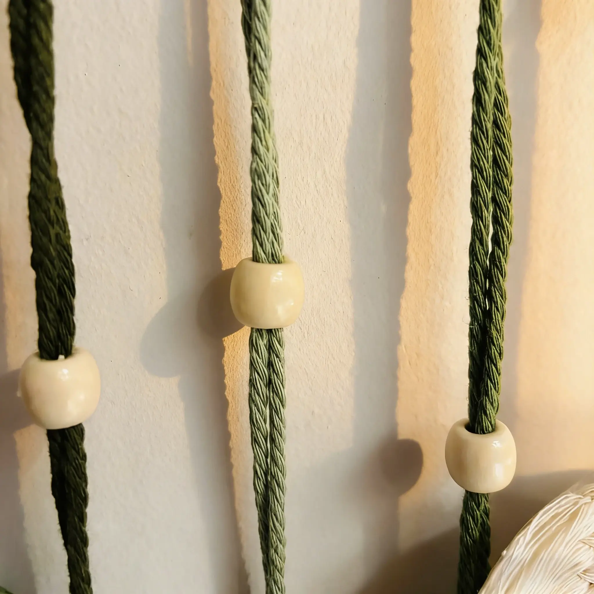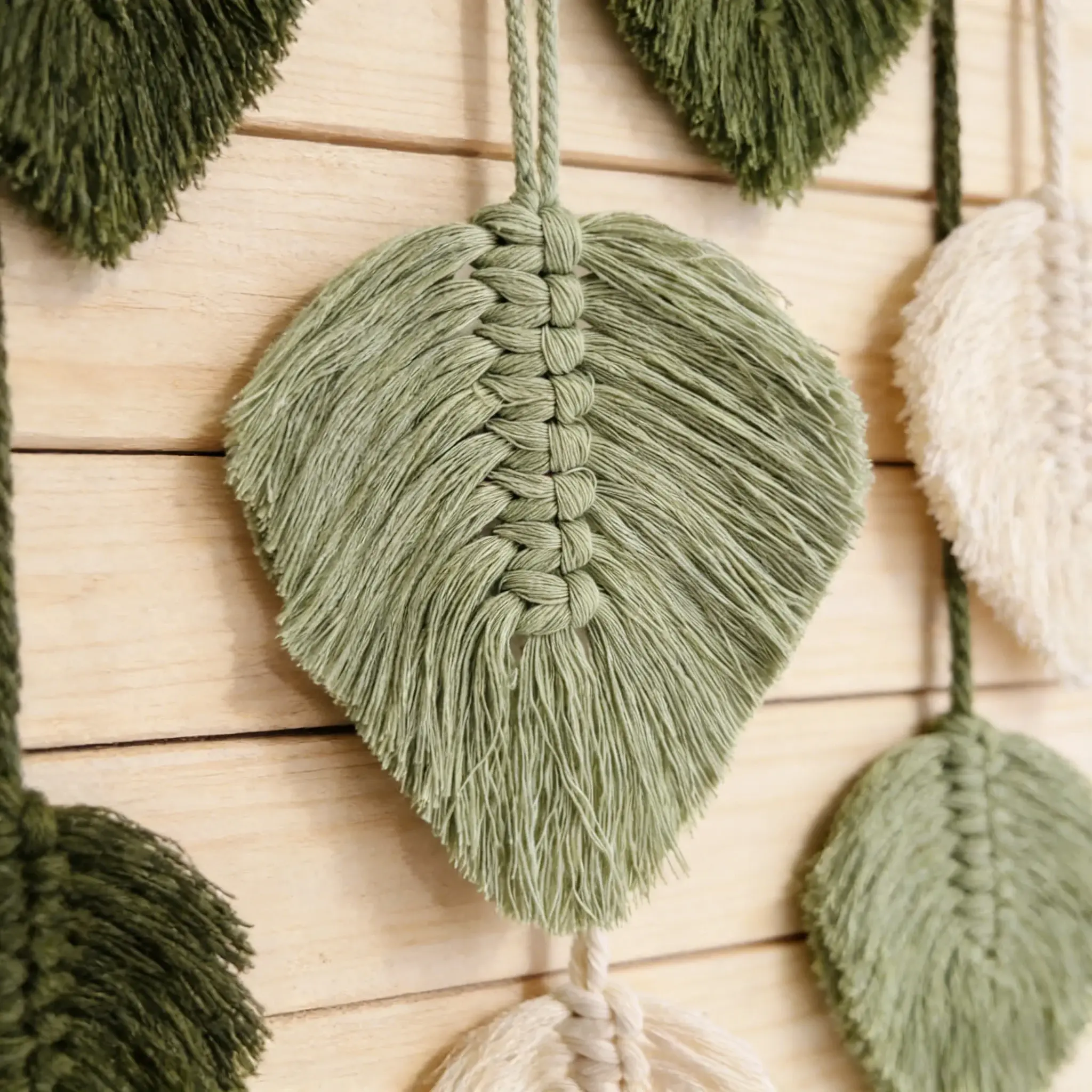 ️ 1.100% handmade – cotton thread leaves knotted on a wooden stick