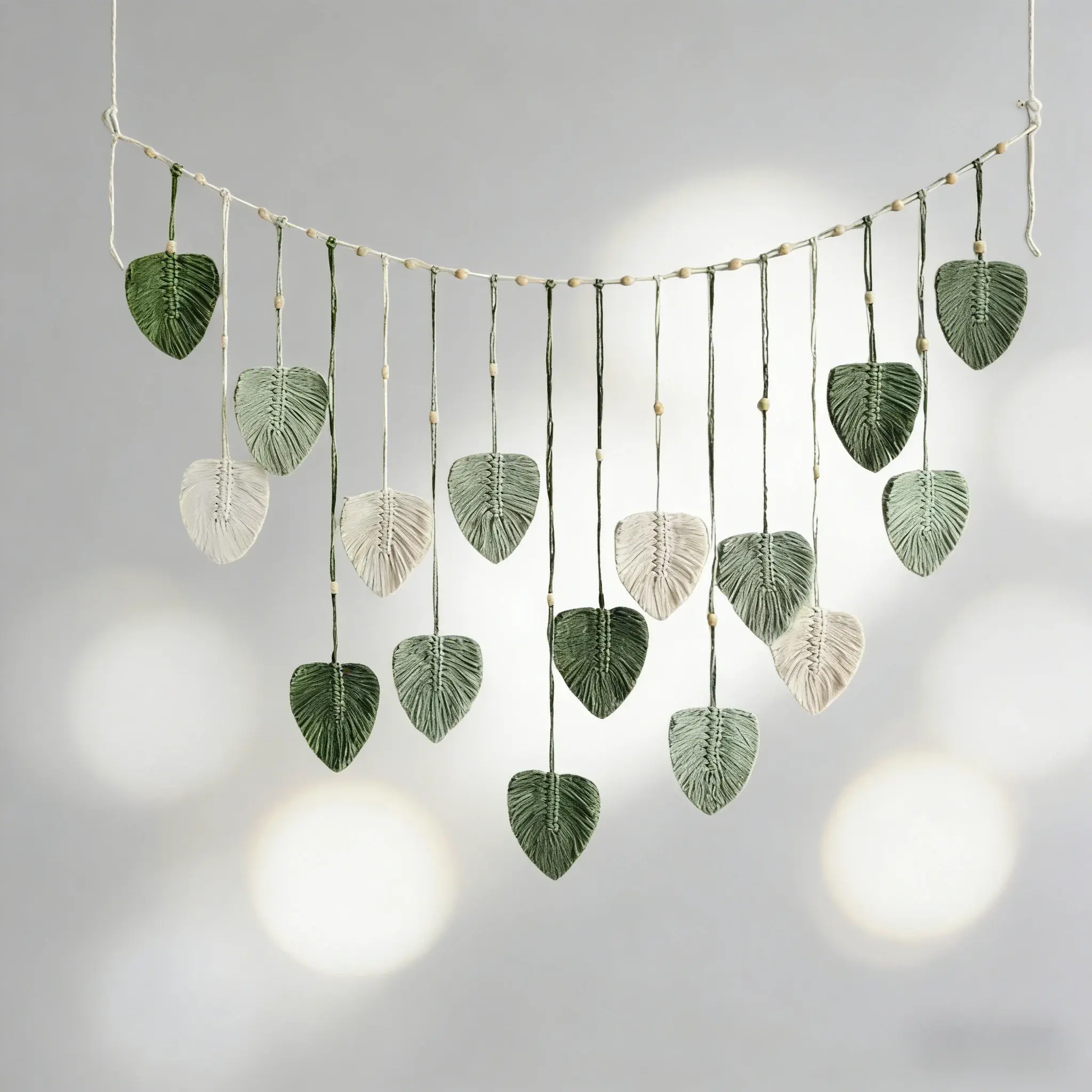 Macrame Leaf Wall Hanging – Boho Green Woven Tapestry