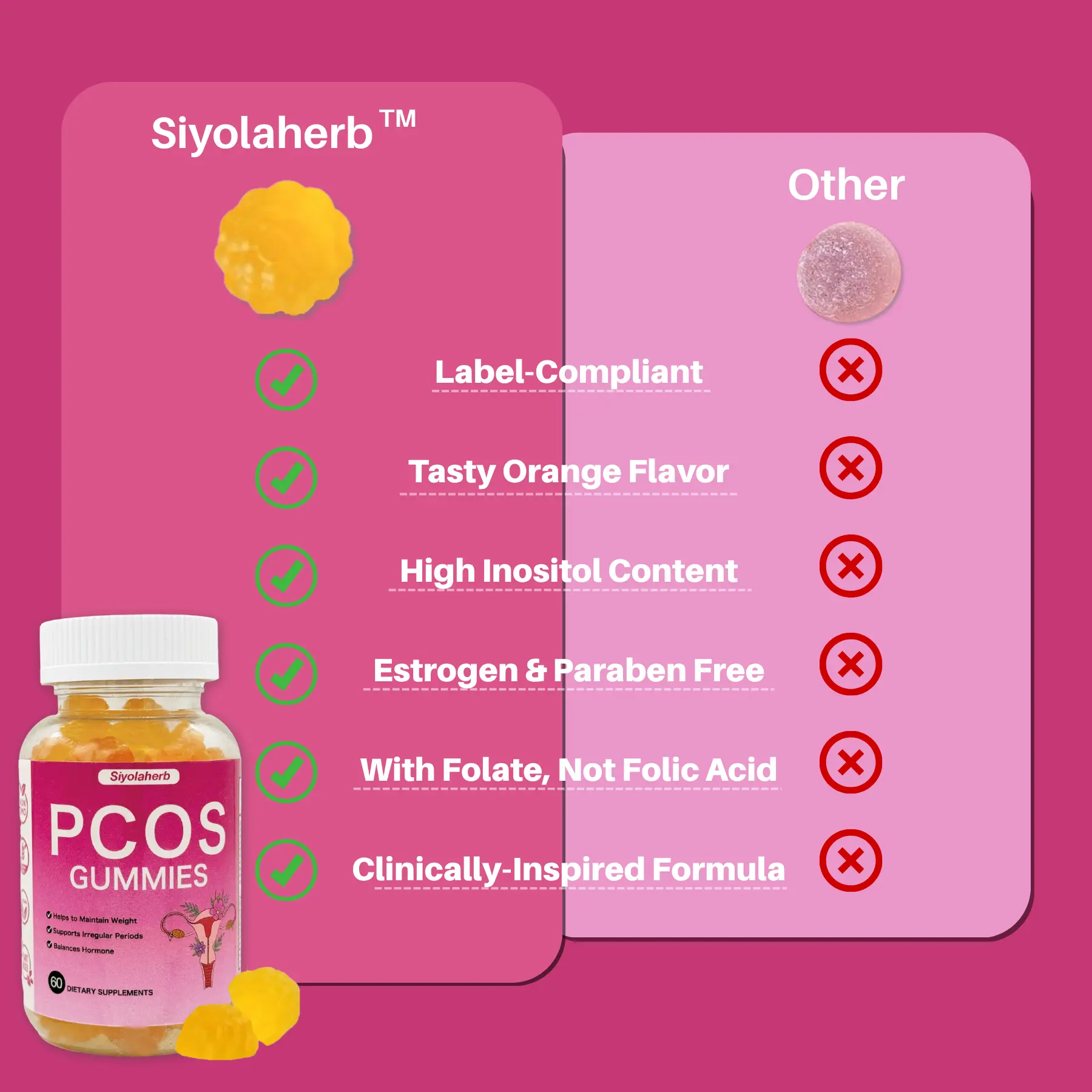 SIYOLAHERB PCOS Vitamins Gummies 60 Count with Inositol Multivitamins Candy for PCOS Support Sweet