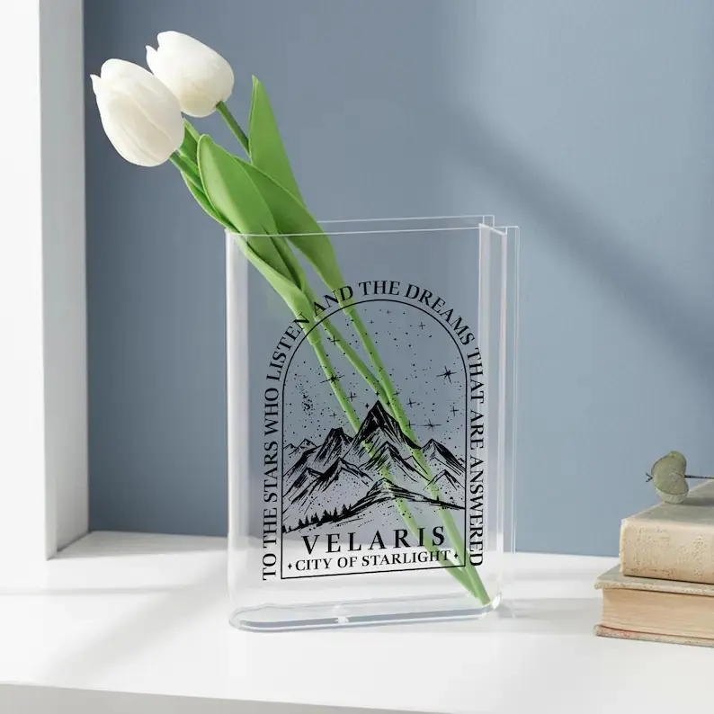 Level up your room aesthetic with our Aesthetic Book Acrylic Vase! Designed for book lovers and interior enthusiasts alike, this unique vase mimics the look of a classic hardback book. Whether you're a "booktok" regular or just looking for that perfect centerpiece, this transparent masterpiece adds a touch of mystery and elegance to any space. It’s not just a vase; it’s a conversation starter.