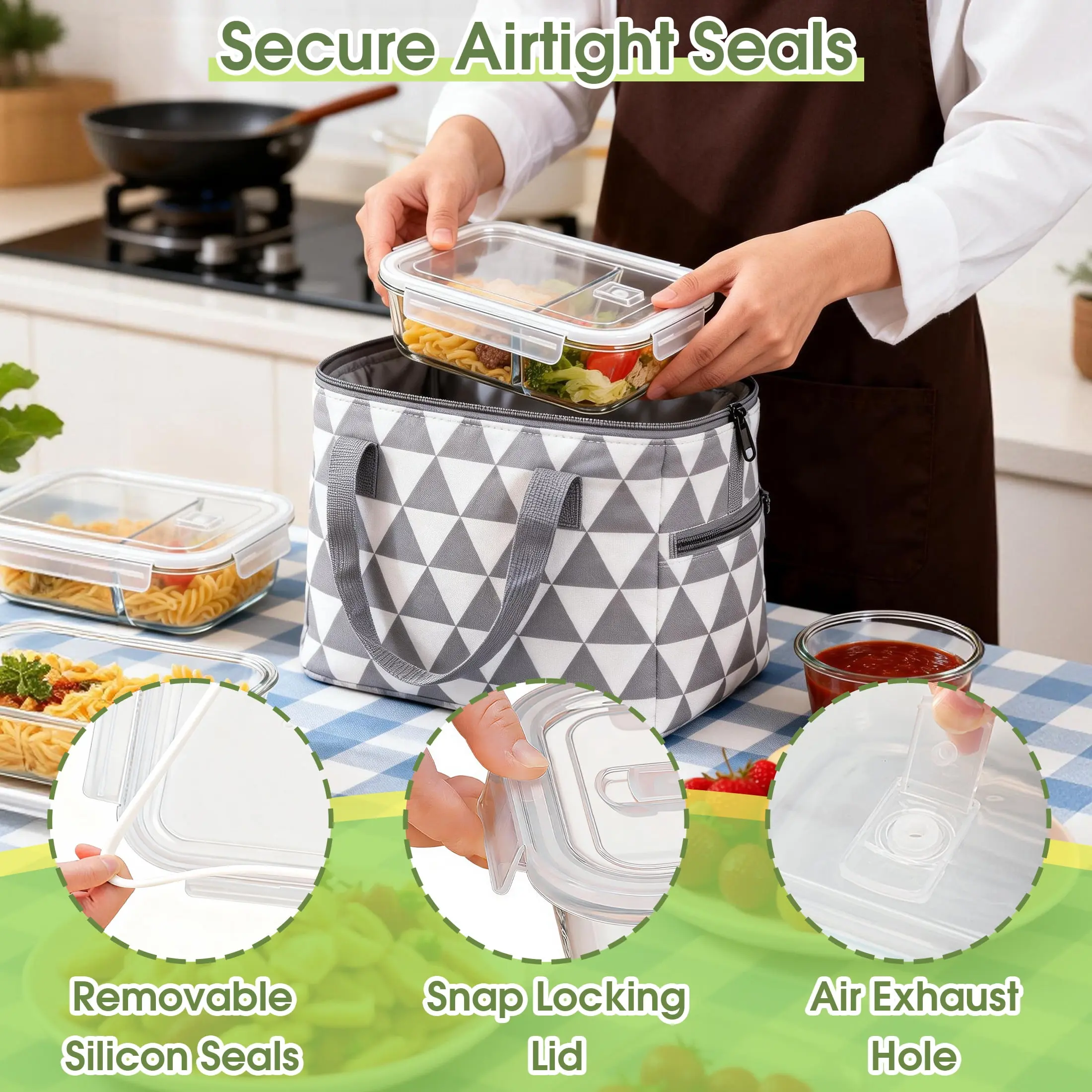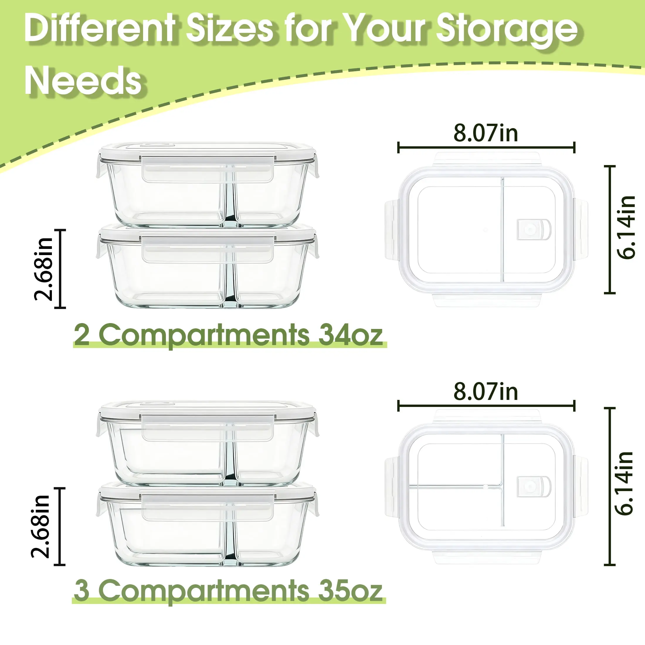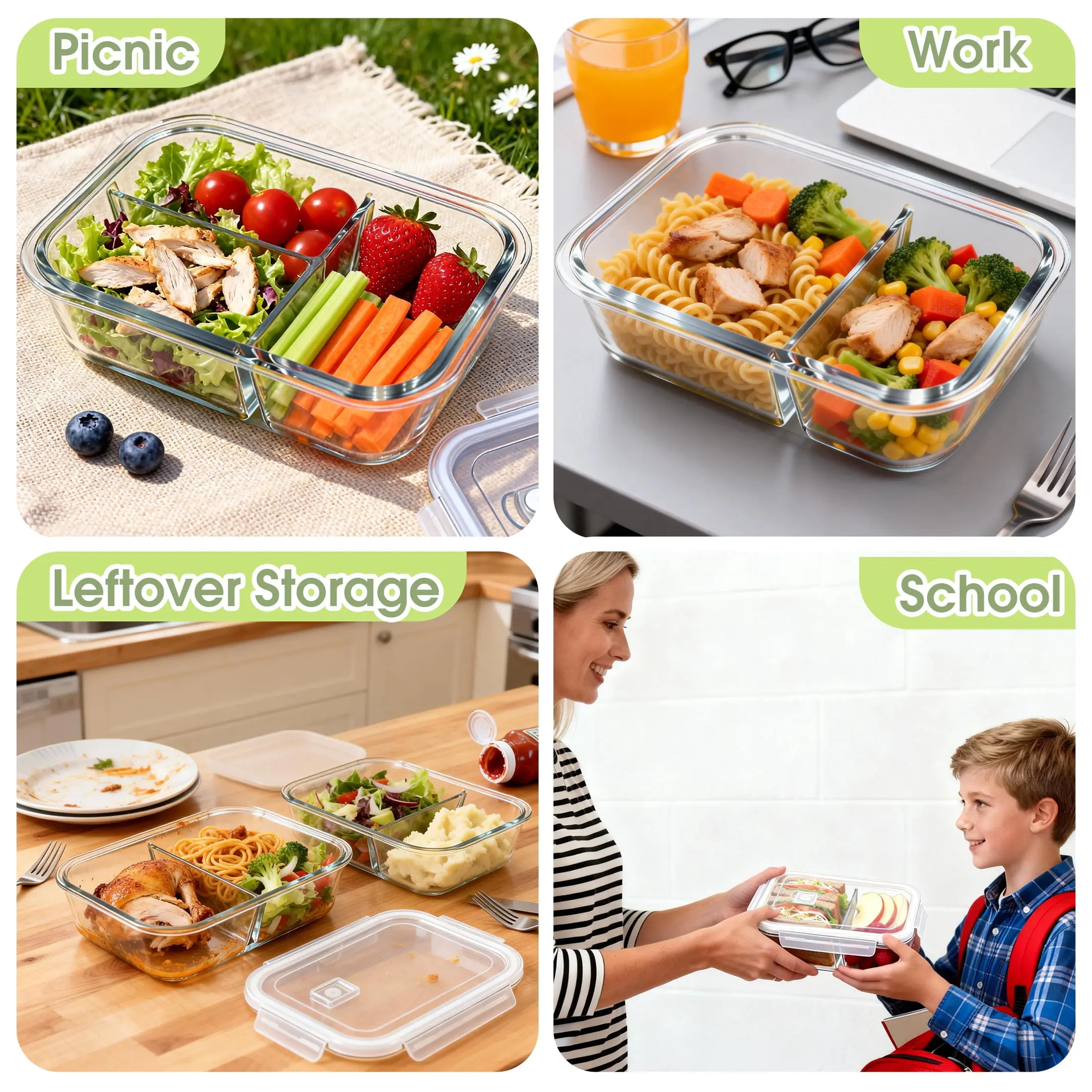 • With dividers, these containers help you separate different food items. The 8-piece set allows for efficient meal planning. Whether for lunch or dinner, these containers keep your food organized and fresh. Enjoy the convenience of glass tupperware in your daily routine.