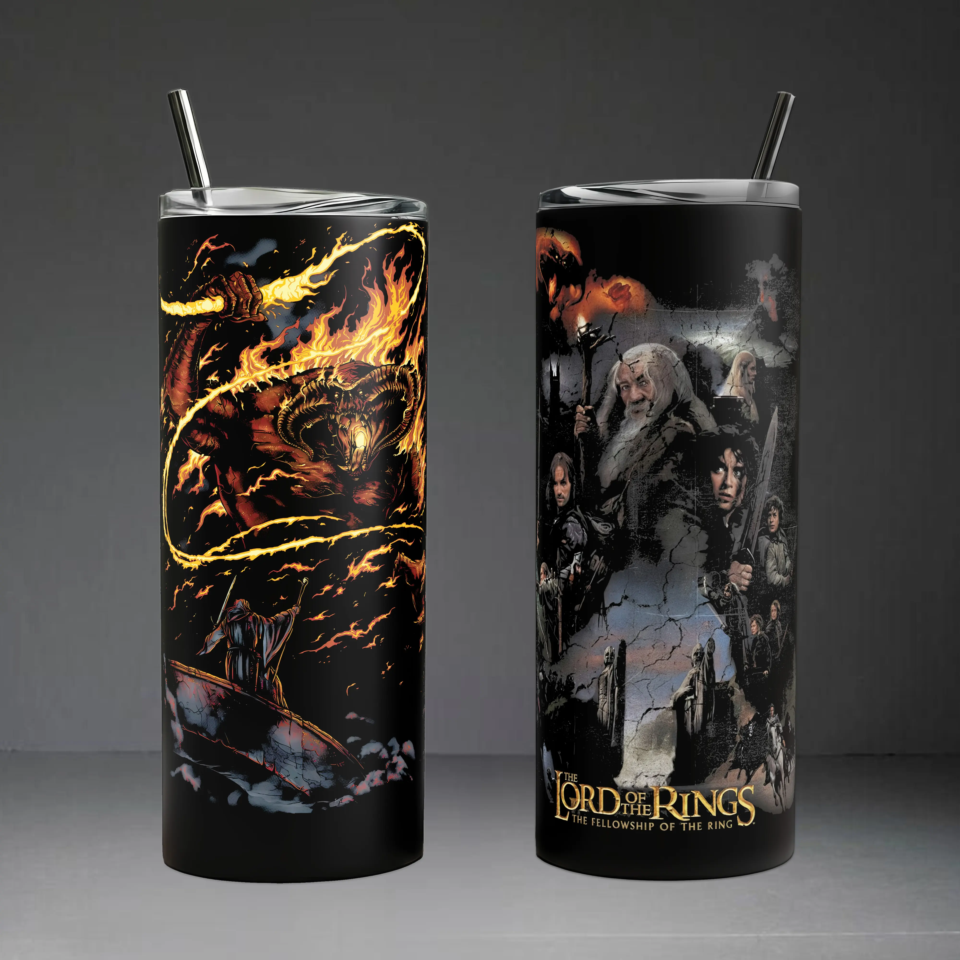 Lord of the Rings 40oz Tumbler with Handle | The Fellowship of the Ring Vintage Graphic Travel Mug | Gandalf vs Balrog Tumblẻ 20oz No Handle Epic Fantasy Movie Fan Gift | Heavy Duty Stainless Steel Cup with Straw