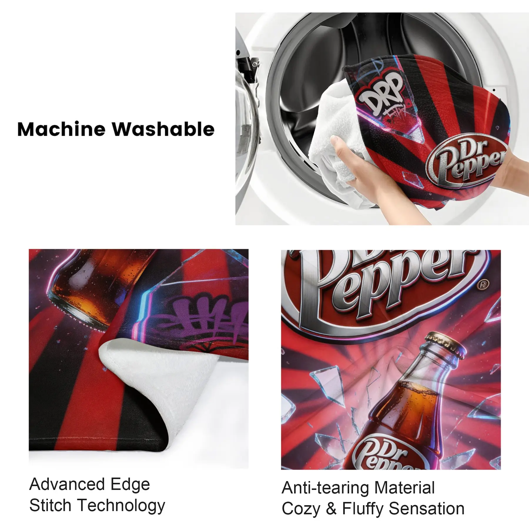 Dr Pepper Street Style Flannel Throw Blanket, Streetwear Soda Graffiti Blanket, Multiple Sizes Available for Various Scenarios, Foldable for Easy Storage, Ideal for Camping and Short Trips, Ideal Gift for Friend