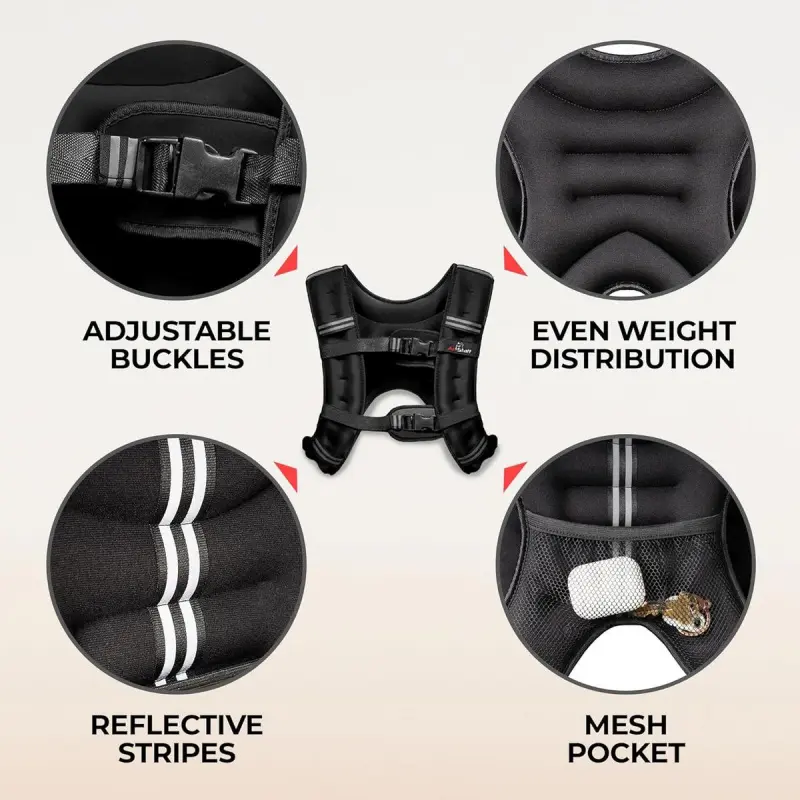 Weight Vest for Running, Strength & Muscle Building, Features Reflective Stripe for Safe Outdoor Workouts (available in 6lbs to 30lbs)