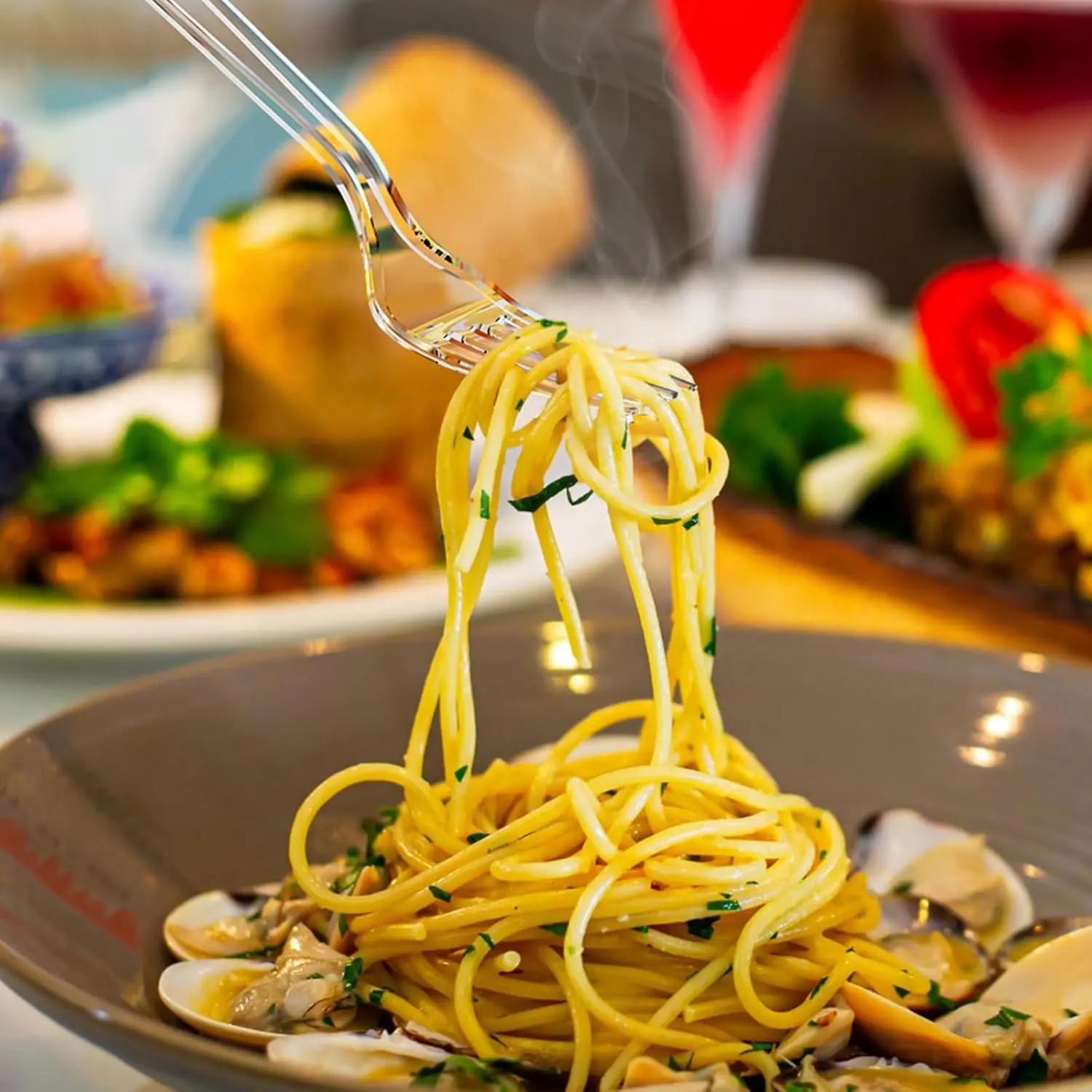 360 Count Extra Heavy Duty Clear Plastic Forks and Spoons, 180 Forks & 180 Spoons, Heat Resistant, Disposable Plastic Silverware Set