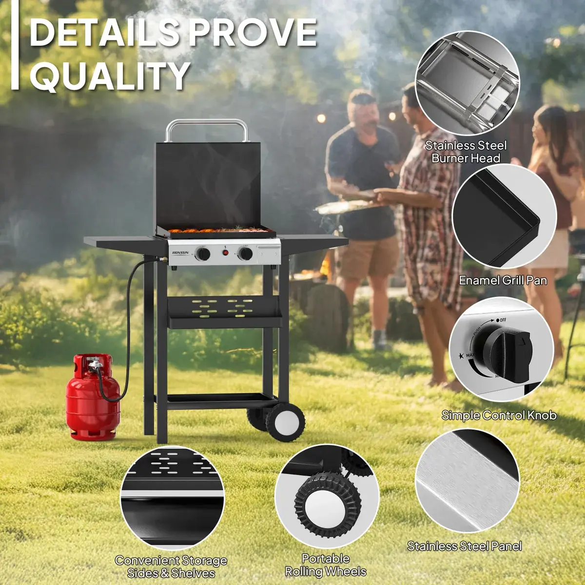 ROVSUN 2-Burner 20000 BTU Portable Rolling Propane Outdoor Griddle with Stand & Lid