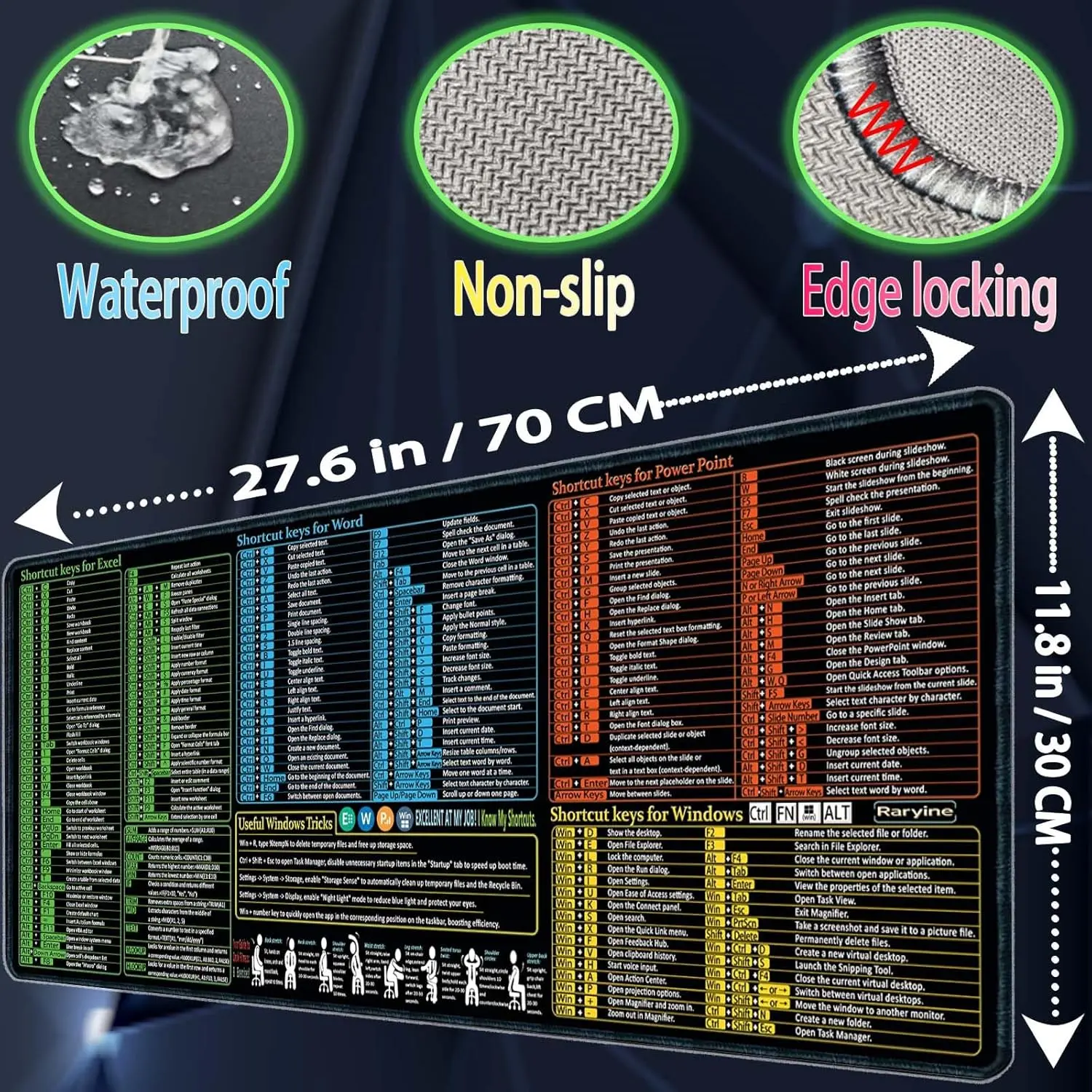 EXCEL CHEAT SHEET DESK PAD: This Excel shortcuts mouse pad is a reliable desk companion, showcasing key shortcuts for Excel, Word, PowerPoint, and Windows. It includes practical information and shortcut keys to help you work more efficiently on your daily tasks.