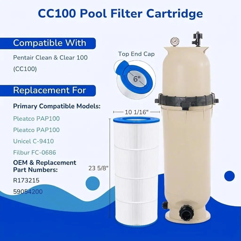 CC100 Pool Filters Cartridge Compatible with Pentair Clen & Clear 100, Replace for Pleatco PAP100, Pentair R173215, Unicel C-9410, 100 sq. ft, 1-Pack