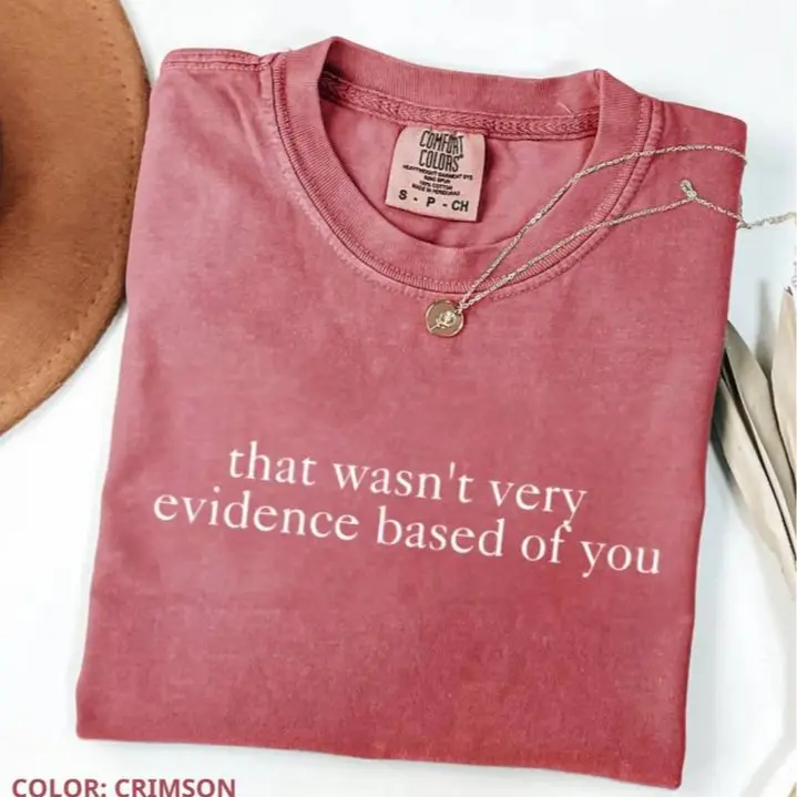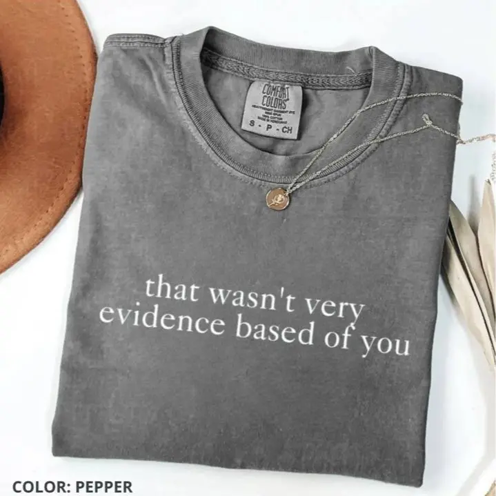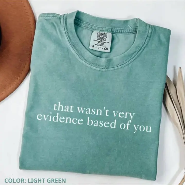 Evidence-Based Nurse Tee – a witty and relatable graphic shirt designed for nurses who appreciate smart humor. Made from 100% premium cotton, this Comfort Colors style tee features a soft, breathable fabric with a vintage washed look and a relaxed unisex fit for all-day comfort. The clever “That Wasn’t Very Evidence Based of You” quote makes it perfect for RNs, nurse educators, and healthcare professionals who live by evidence-based practice. Built with high-quality printing that resists fading and cracking, it’s ideal for workdays, casual wear, or as a thoughtful nurse appreciation gift. A must-have for anyone in the medical field who loves humor with a brainy twist.