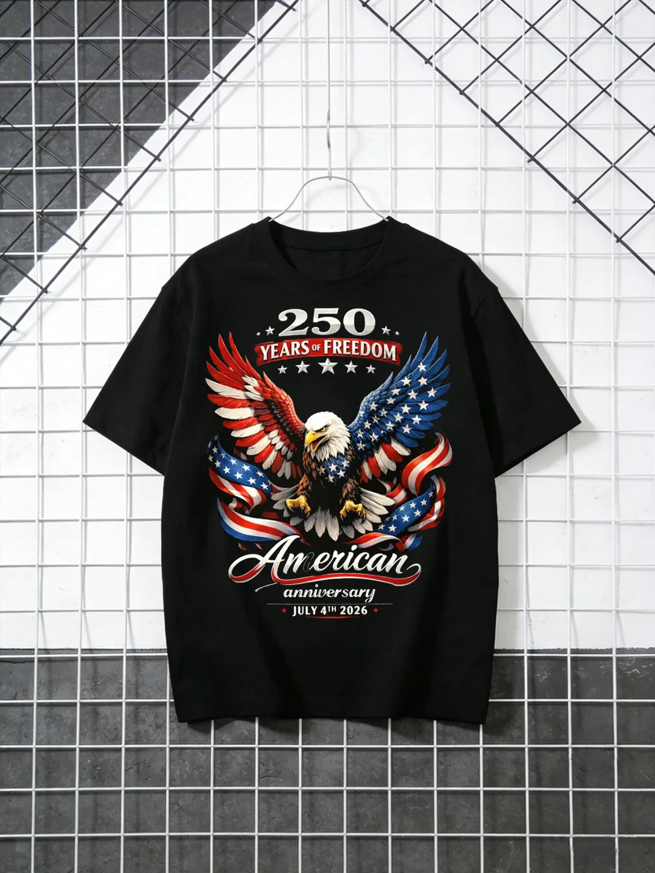 Men's America 250th Anniversary Graphic T-Shirt Eagle and Flag Print 1776–2026 Short Sleeve Patriotic Casual Street Style Fashion Top