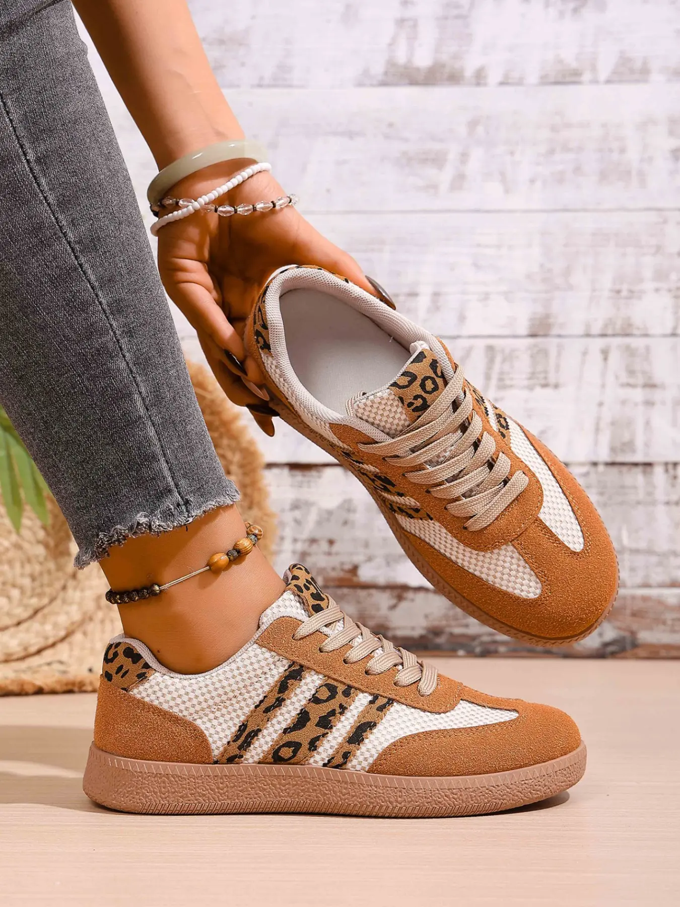 5. Leopard Print Patchwork Training Shoes, Vintage Three Stripe Casual Agony Shoes, Versatile Women's Footwear, Trendy and Comfortable
