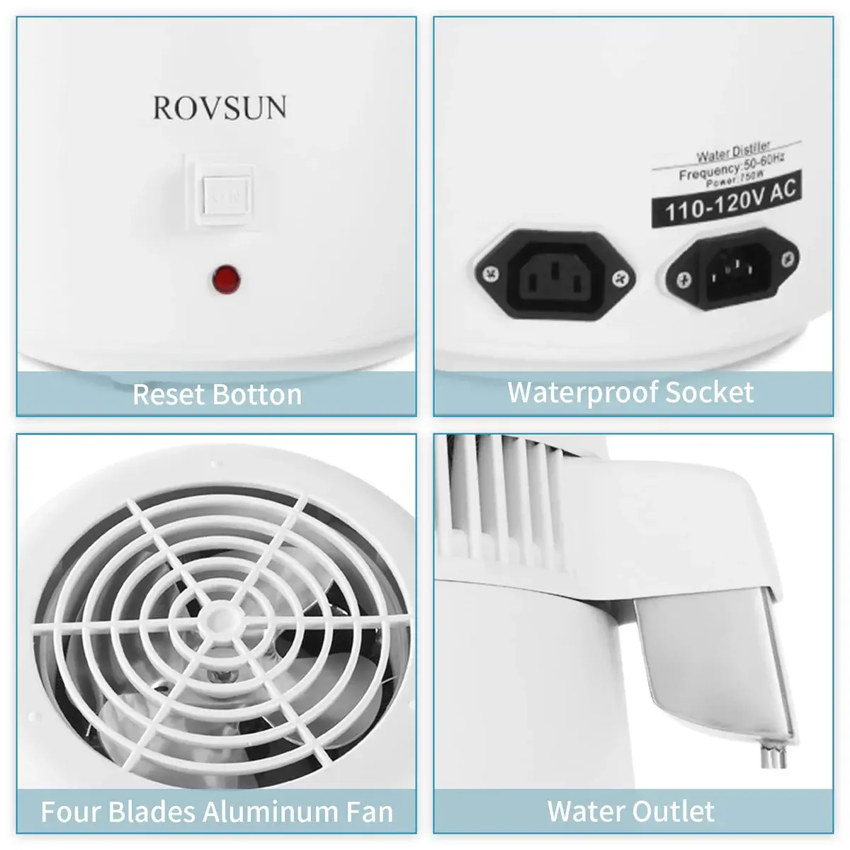 ROVSUN water distiller can water up to 1L per hour, and take about 4 hours to finish one round of water distillation. And it comes with a 4L water container which is made of food-grade plastic for water storage. What’s more, its inner tank is made of stainless steel, which ensures safety and also strengthens its durability. Ideal for home use.