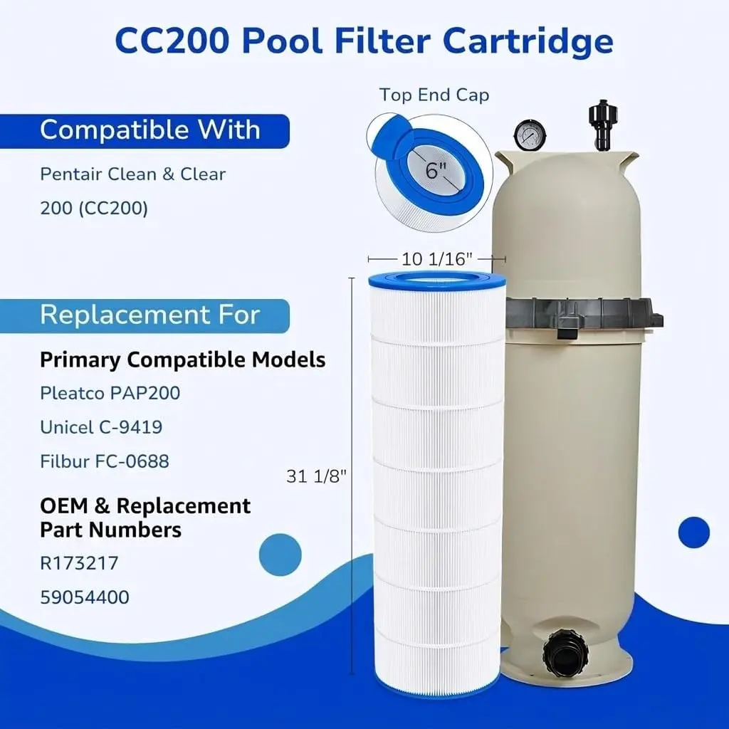 CC200 Pool Filter Cartridges Compatible with Pentair Clean & Clear 200, Replacement for Pentair R173217, Pleatco PAP200, Unicel C-9419, 200 sq.ft