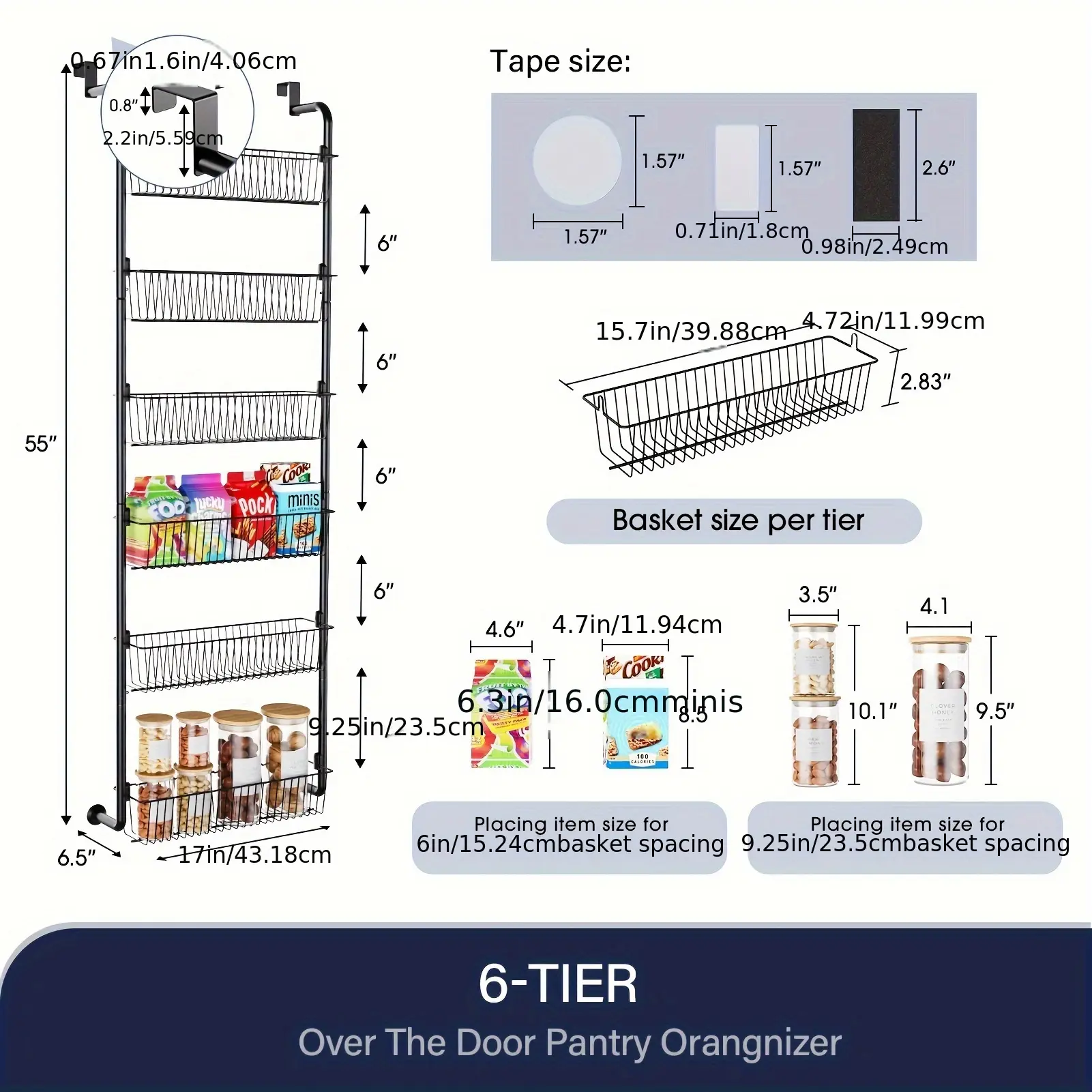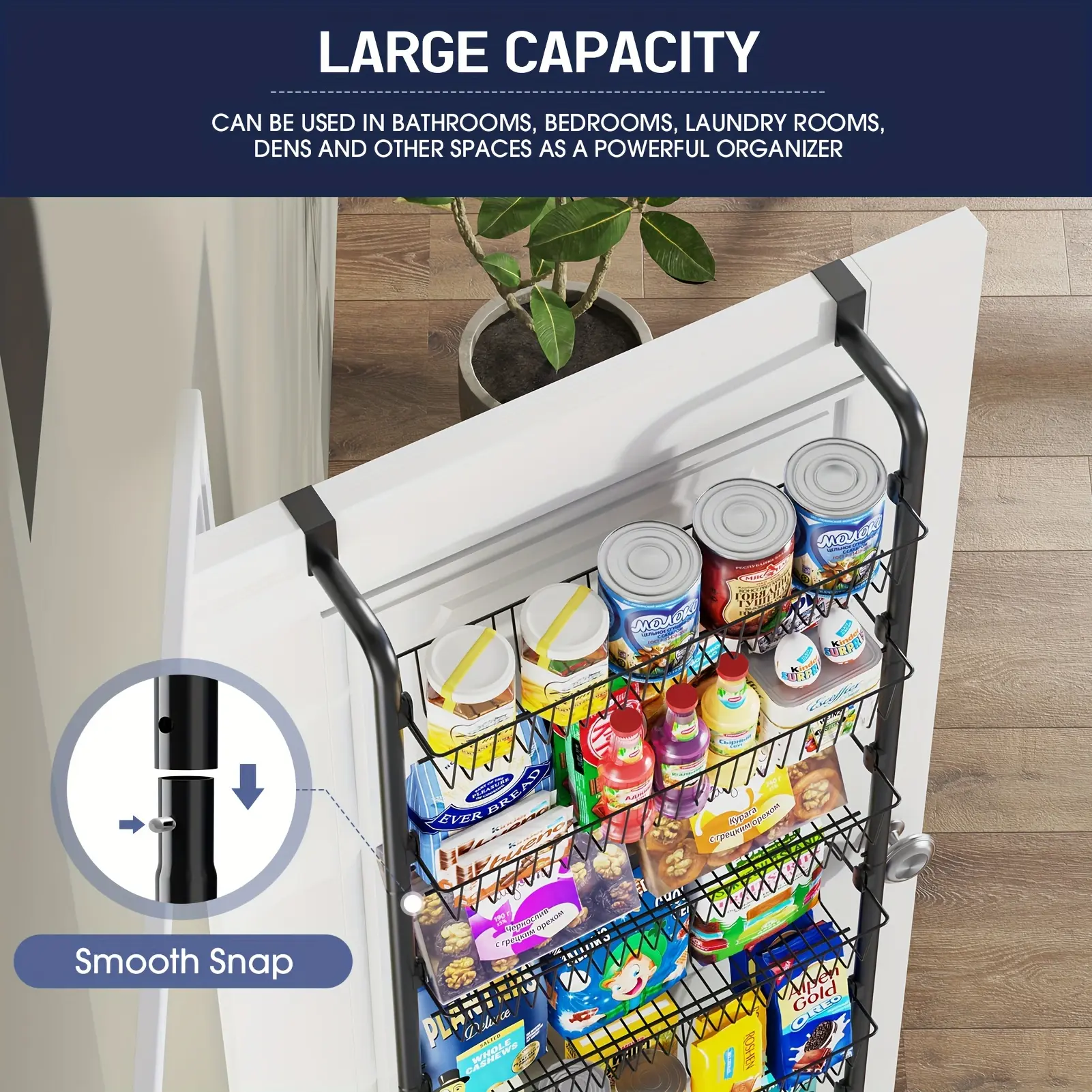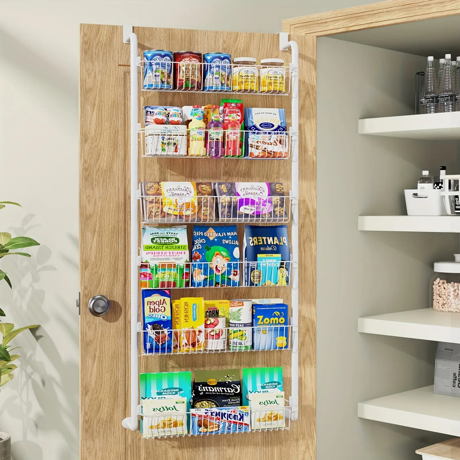 6/8 Shelves - Over The Door Food Pantry Organizer - Space-Saving Organizer - Ideal For Spice And Food Storage