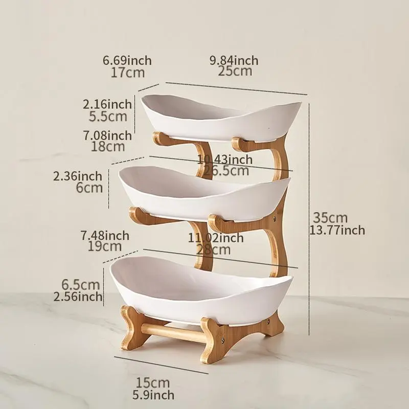 Set with Wooden Stand, Plastic Bowls, Cake Stands, Biscuit Plates, Candy Buffet, Perfect for Weddings & Parties, Display Storage Rack