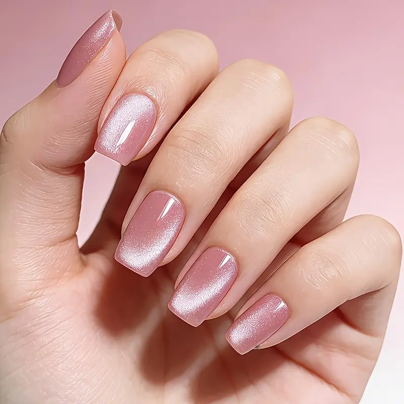 Cat-Eye Pink Nude Almond Nails| Short Press-On DIY Kit| Magnetic Gradient False Nails| Daily Wear Beauty Set