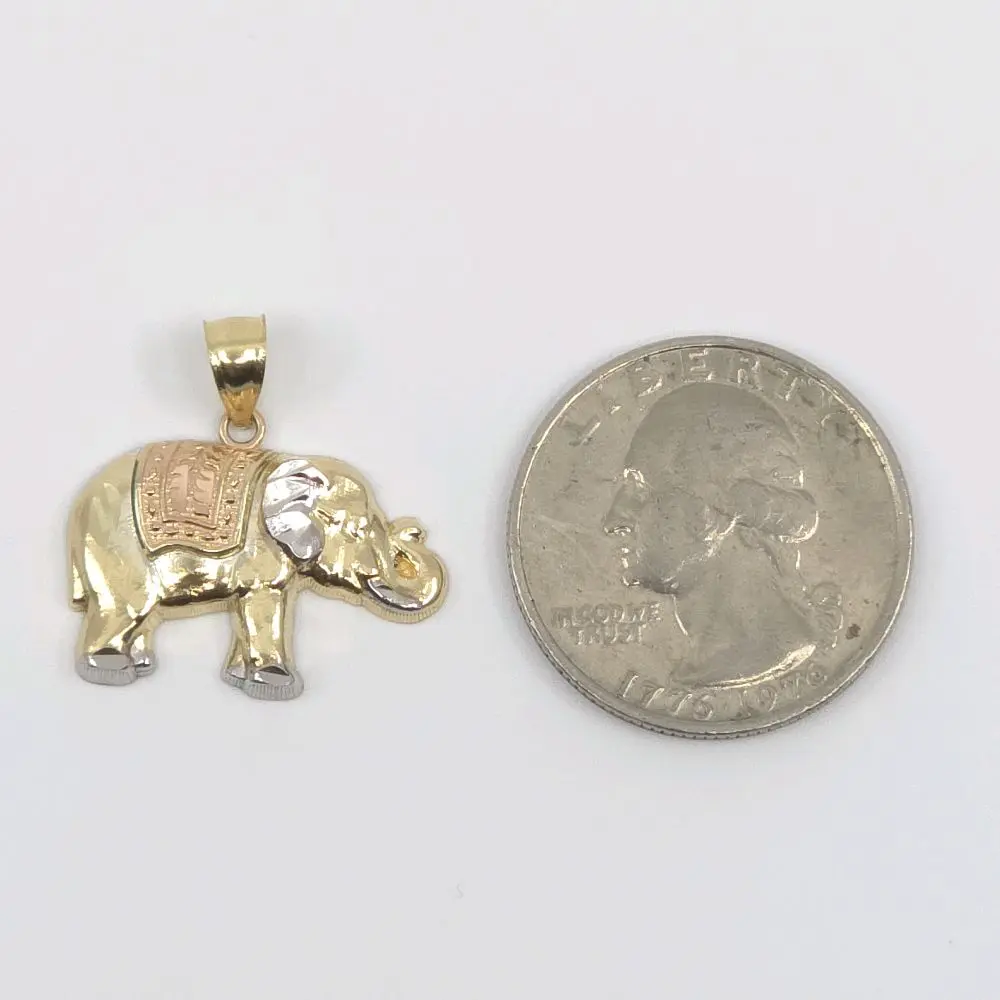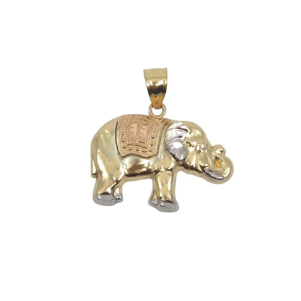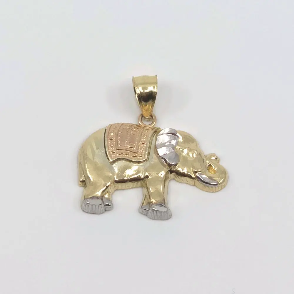 Discover the unique "Dije de Elefante en tres tonos 10k." This piece features an elephant design in three distinct tones. Perfect for those who appreciate intricate jewelry. The 10k designation adds a touch of elegance. Ideal for special occasions or everyday wear.