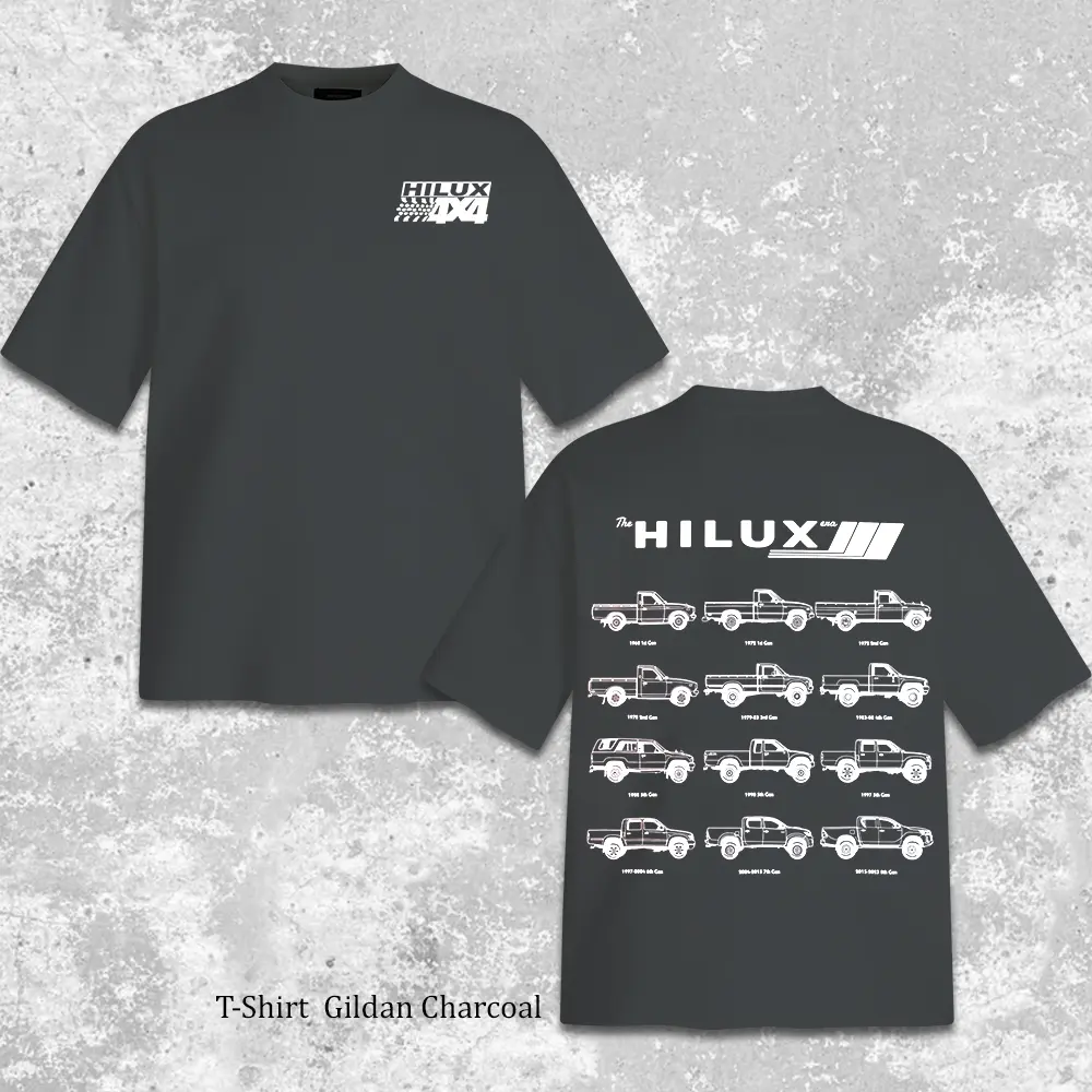 Retro Hilux Through the Decades Men's Short Sleeve Cotton, Hilux Classic Car Apparel, Square Up Vintage Truck Shirt, Automotive Clothing Menwear, Old School Pickup Graphic Tee, Off-Road Car Lover Gift