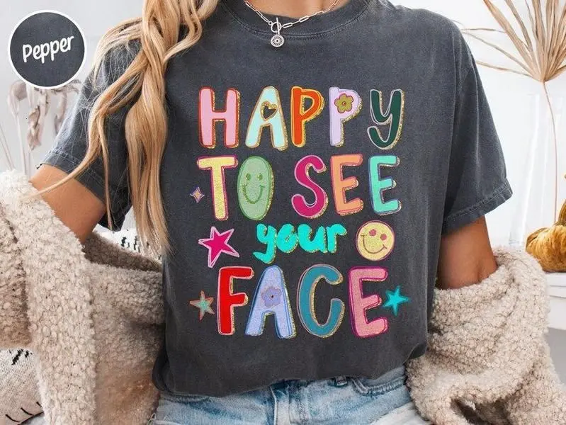 5. Happy To See Your Face Shirt, Appreciation Gift for Teacher Shirt, Teacher Stars Back To School Shirt