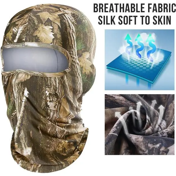 🧳 Wear as a full balaclava, neck gaiter, or face mask. Perfect for hunting, airsoft, tactical training, or wildlife photography. Lightweight enough for all-day wear without restricting movement.