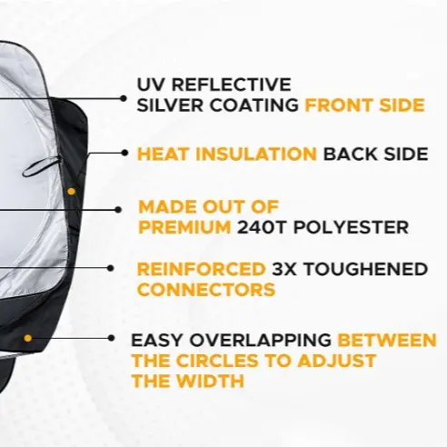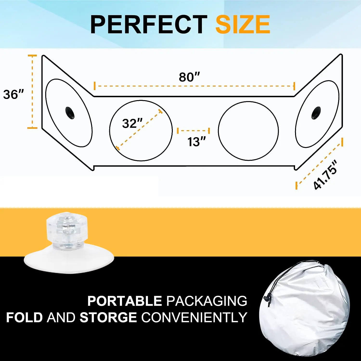 ·Reflective & Insulating Design: The high-quality silver reflective material deflects 98% of UV rays, while the heat-insulating backing lowers interior temperatures by up to 40°F, offering serious relief when parked under the sun.