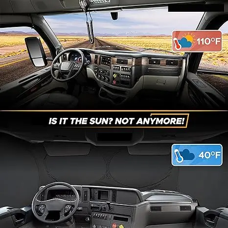 ·Perfect Fit for Most Trucks: This sunshade provides full coverage for most semi, commercial, and big rig trucks. It’s designed to fit both wide and narrow windshields for a snug and secure fit.
