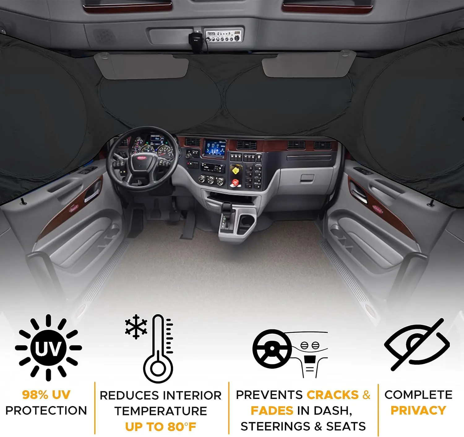 Semi-Trailer Sunshade for Full Windshield and Side Windows | 240T Maximum Sunshade Coverage | Blocking Solar Heat Radiation | Windshield Sunshade Umbrellas Sun Visors Protective Covers International Trucks car cool sun blind Protector windshield shade