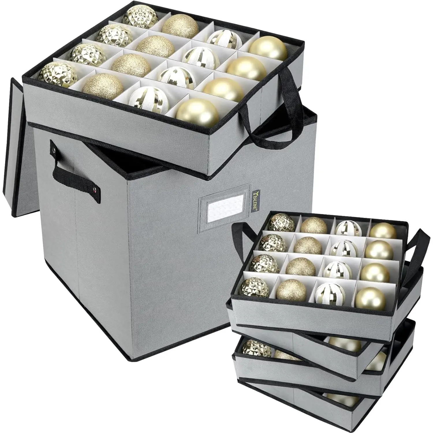 Christmas Ornament Storage Box with Dividers, Premium Holiday Ornaments Storage Container Bin for Xmas Decorations