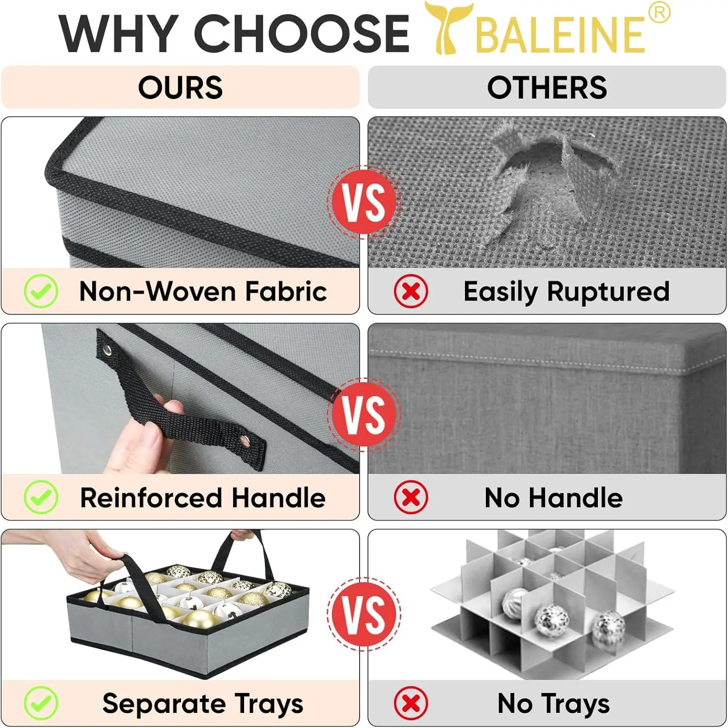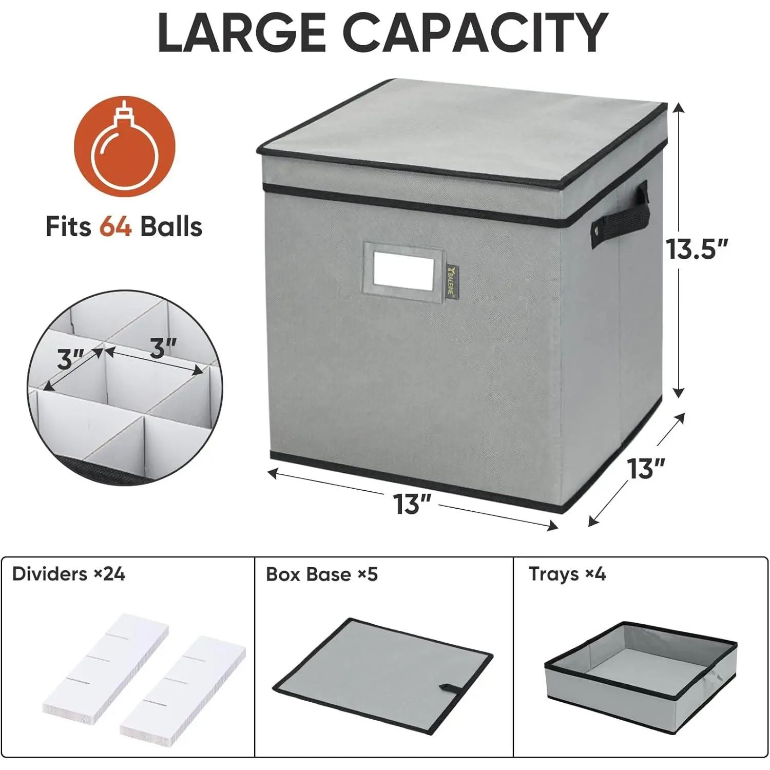 5. Christmas Ornament Storage Box with Dividers, Premium Holiday Ornaments Storage Container Bin for Xmas Decorations