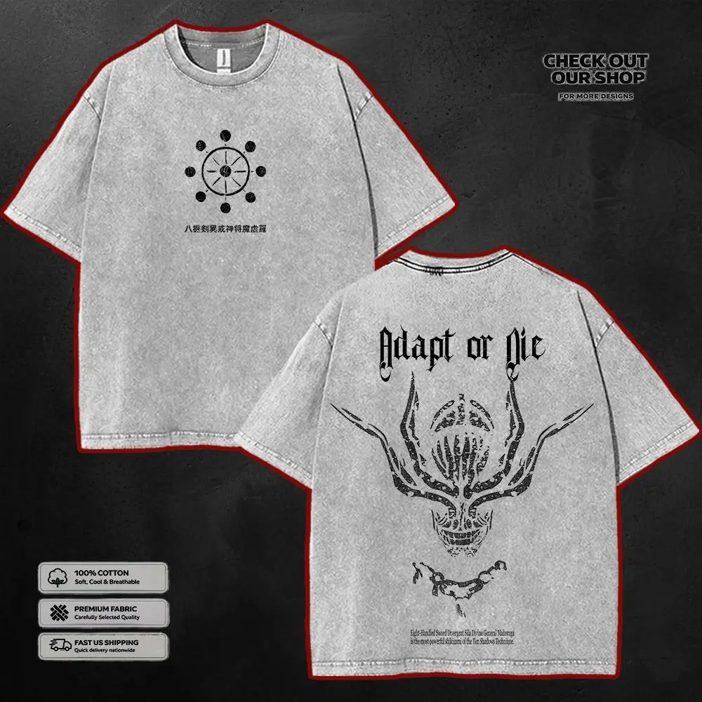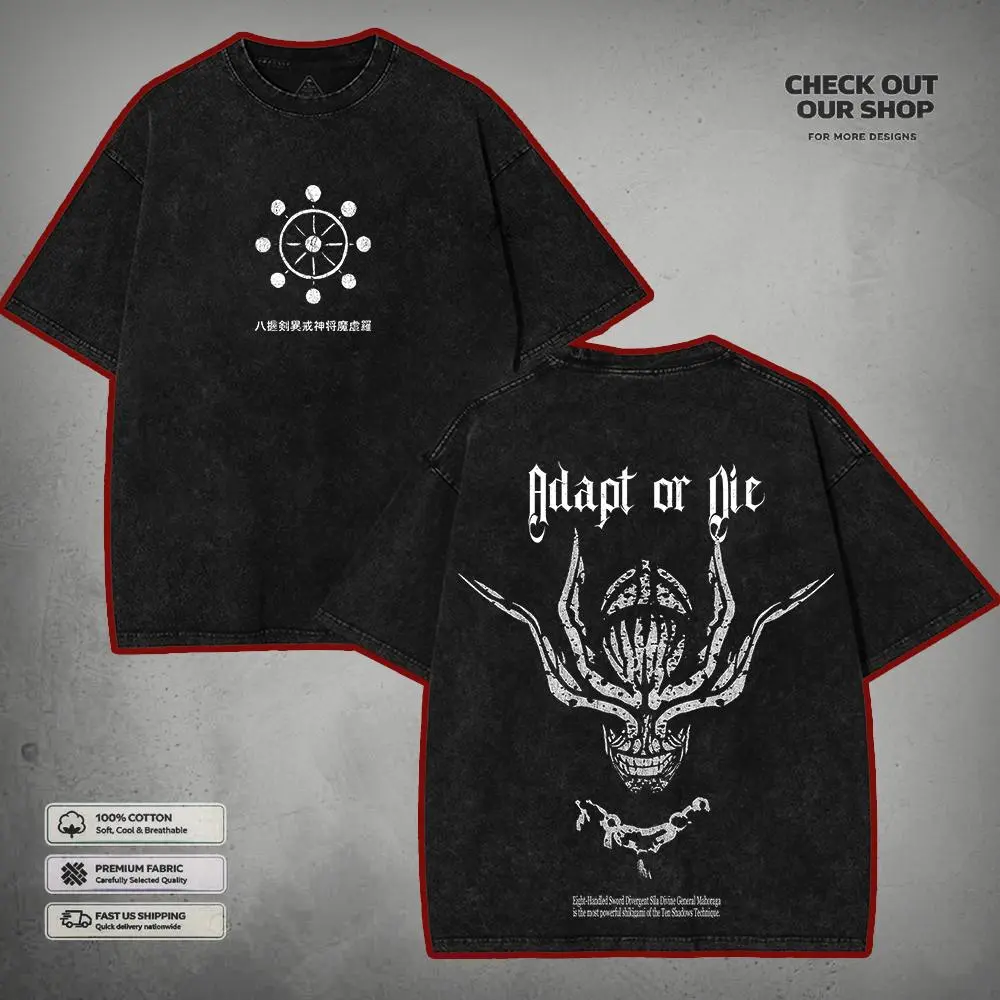 Mahoraga JJK Anime Aesthetic Washed T-shirt, 90s Vintage Anime Streetwear Tee, Unisex Heavyweight Cotton T-shirt for Anime Subtle Shirts Merch Clothes Clothes