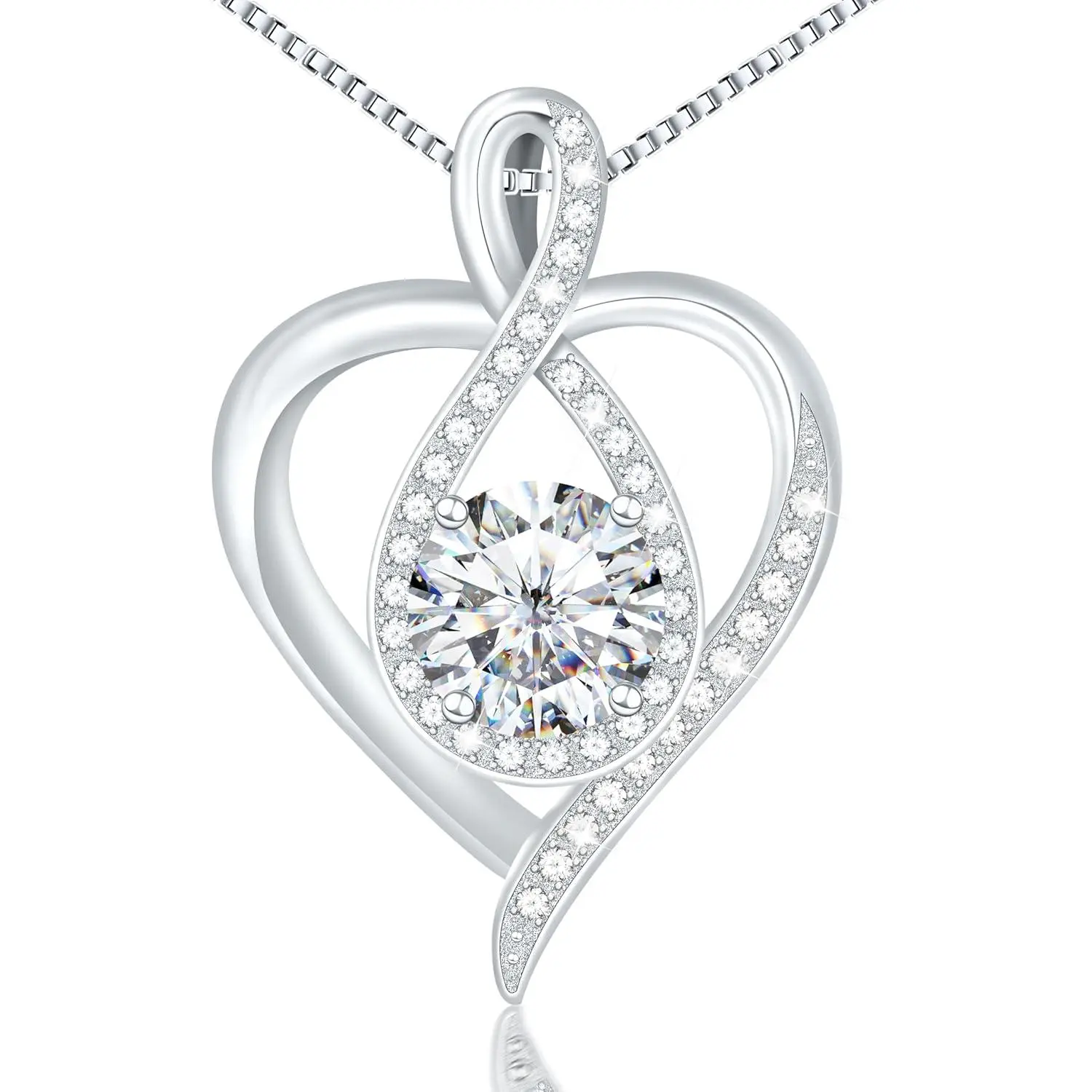 925 sterling silver silver infinity heart-shaped necklace, rhodium-plated cubic zirconia pendant, a gift for girlfriend, wife, mother - anniversary, Valentine's Day, birthday gift, comes with an elegant gift box, holiday gift, exquisite gift