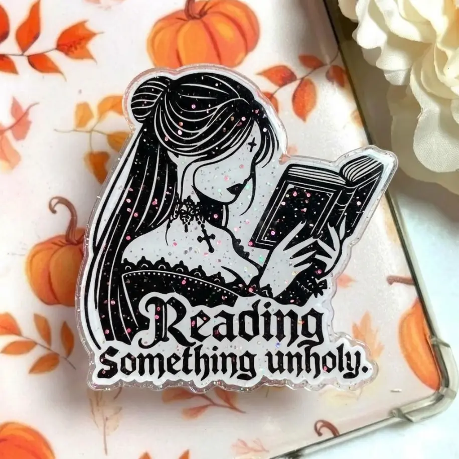 Reading Something Unholy Phone Grip, Dark Romance Bookish Accessory, Funny Gothic Kindle Stand, Smutty Book Club Gift, Spooky Girl Griptok, Book Worm Decor