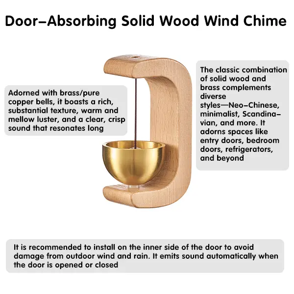 【Handcrafted Natural Wood + 15g Thick Brass Bell】Premium wood + high-quality copper — rich tones, distinct grain, silky-smooth finish. 15g brass bell = louder, longer chimes. Hand-polished, compact design blends retro/nostalgic charm — fits rustic/modern/farmhouse styles as a dopamine-boosting decor.