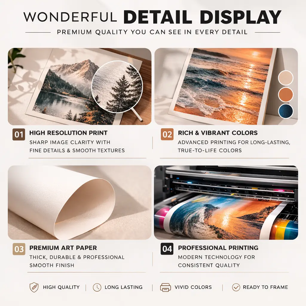 All posters come unframed, giving you the freedom to style them your way. Printed on quality paper with sharp details and balanced colors, every poster is made to look clean, modern, and long-lasting.