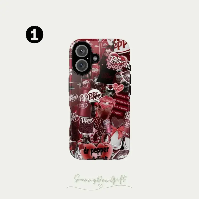 Dr Pepper Inspired Y2K Retro Collage Phone Case – Vintage Soda Aesthetic Cover Compatible with iPhone 17, 16, 15, 14, 13, 12, 11
