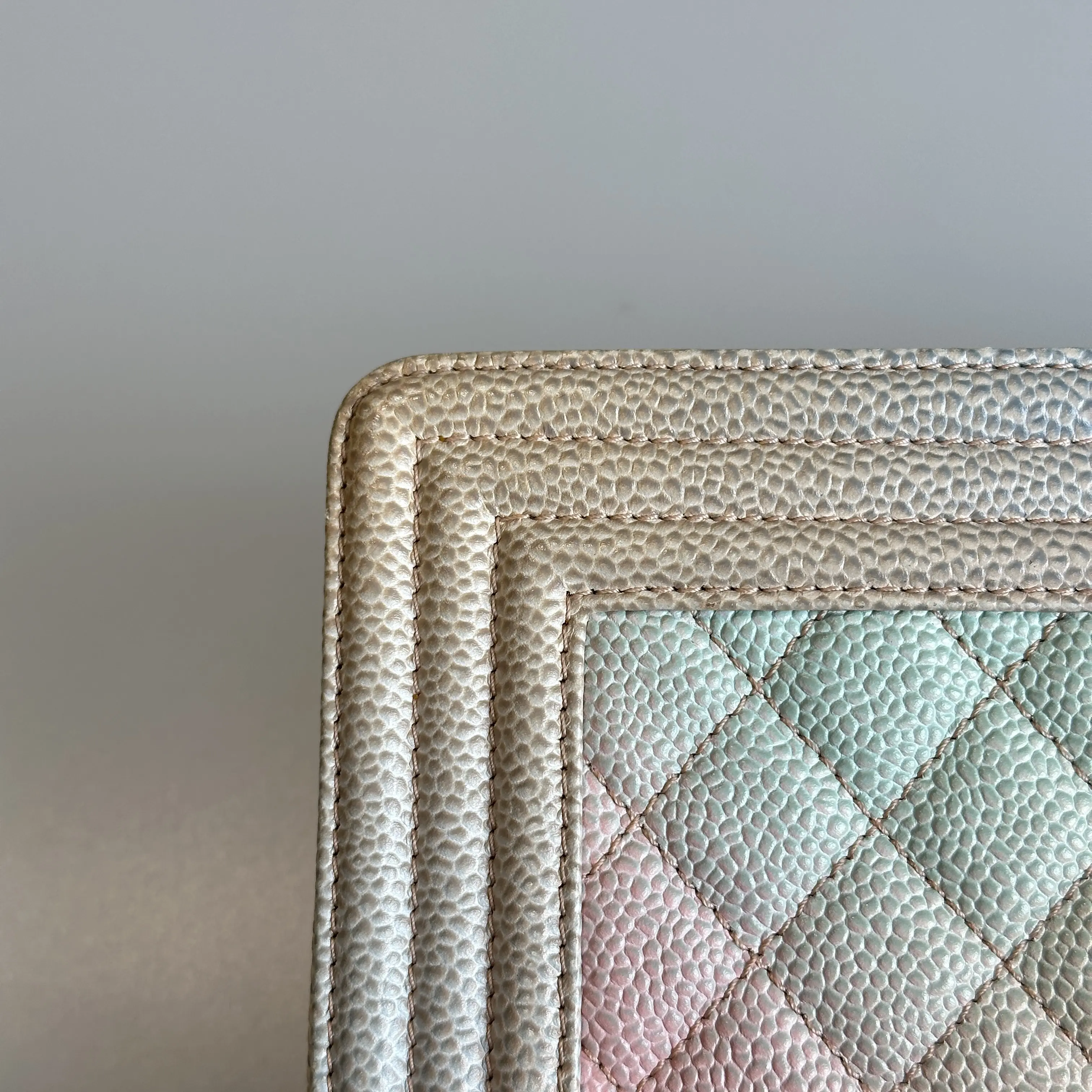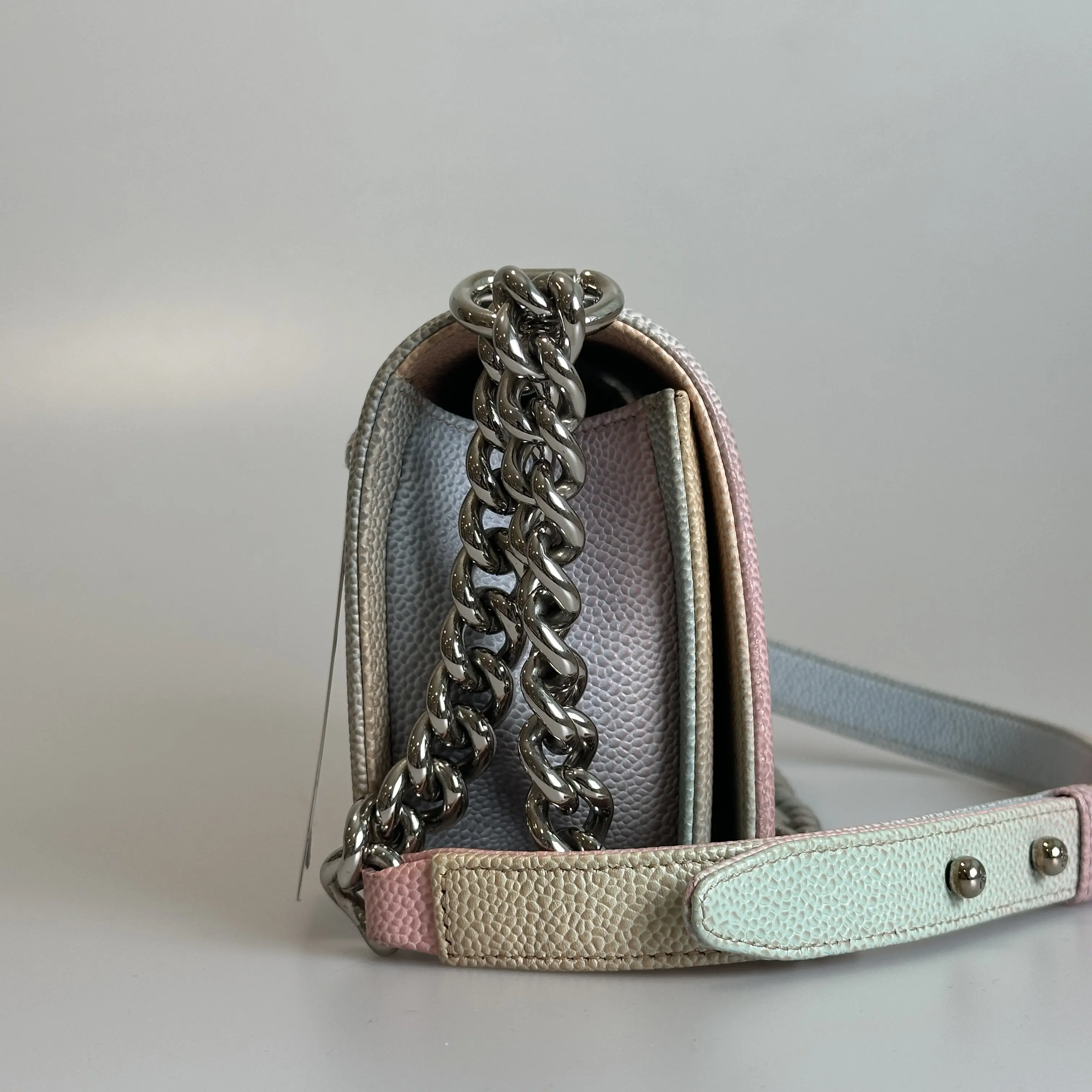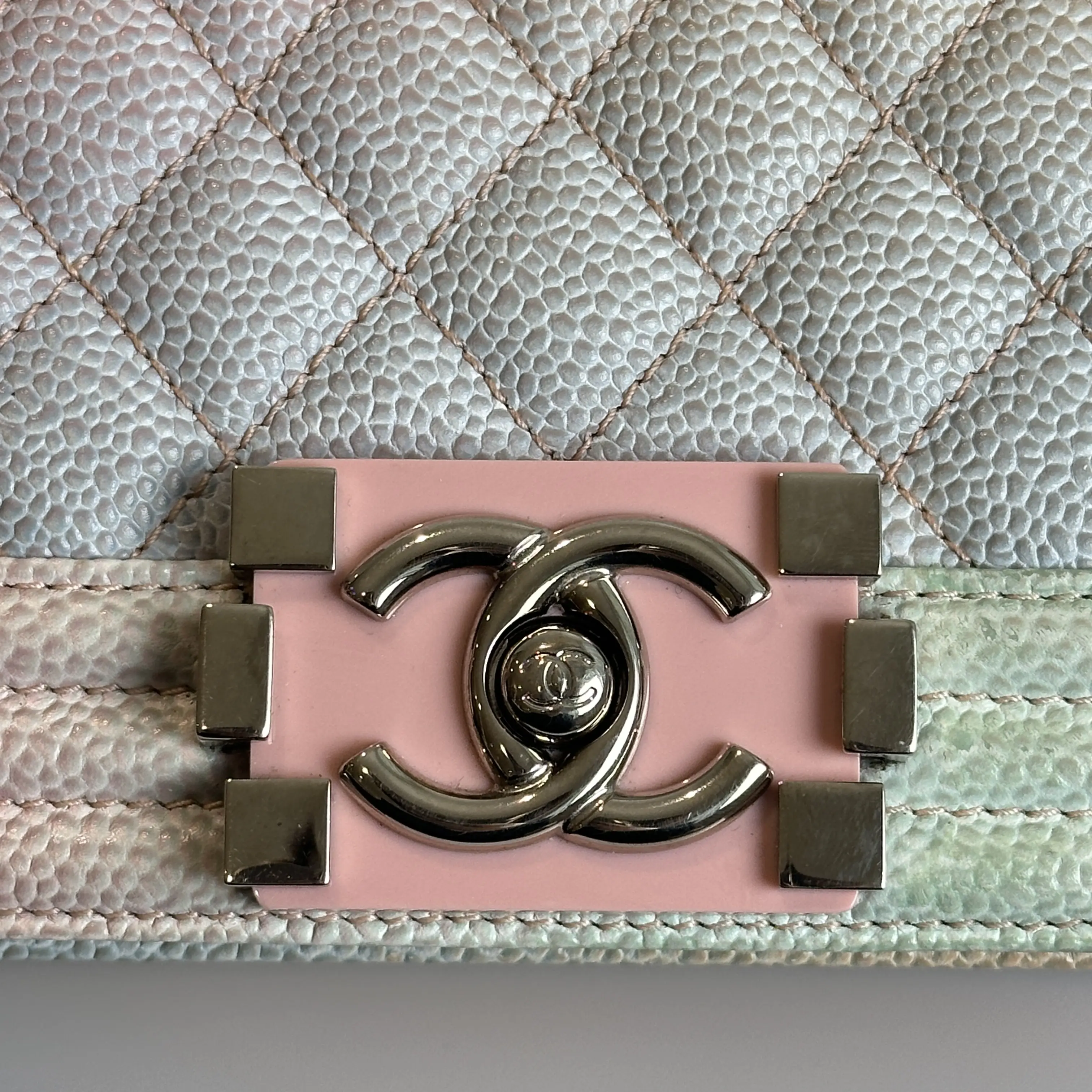Pre-owned CHANEL Caviar Leather Shoulder Bag Le Boy Small Multicolor Quilted Pink Tone Hardware 12069952