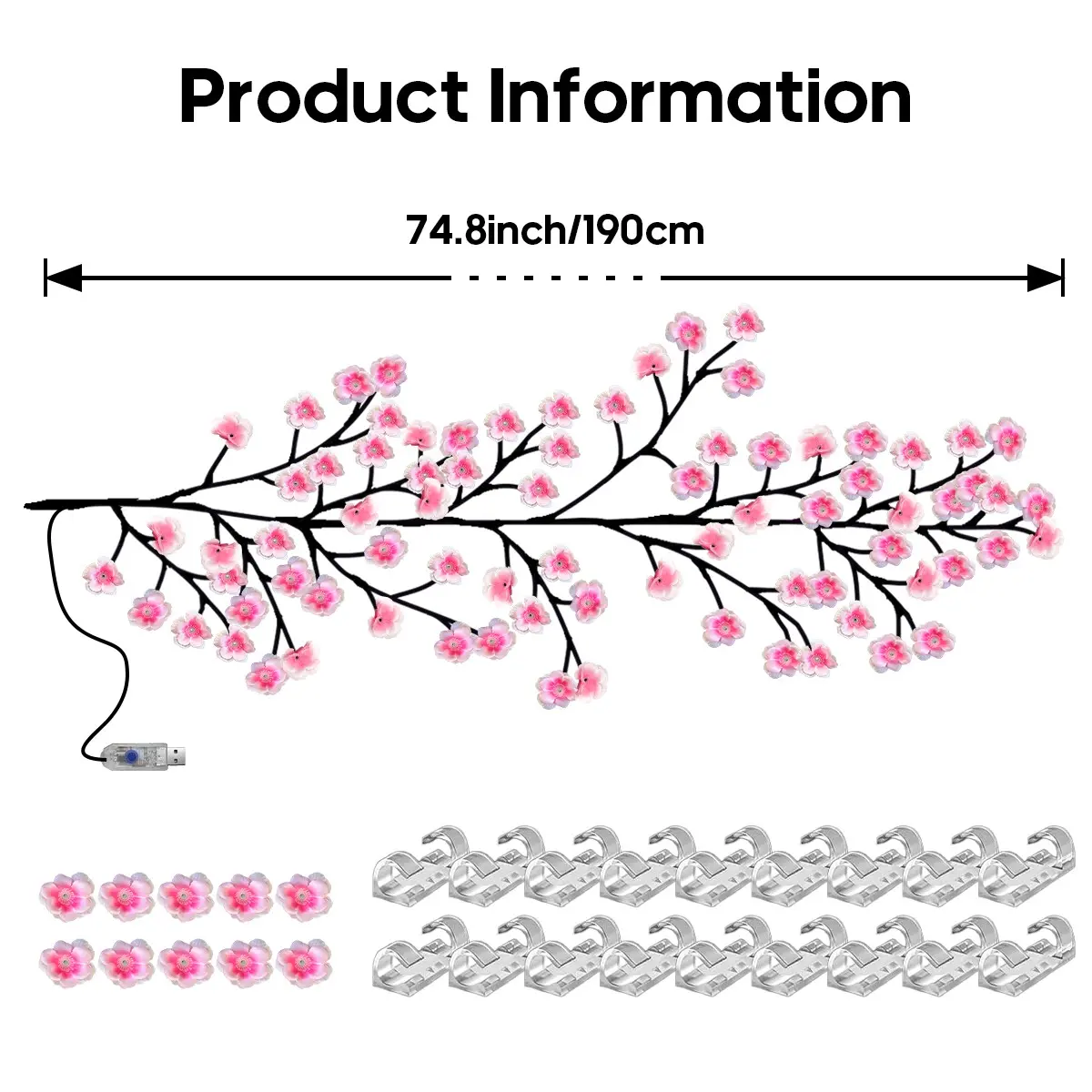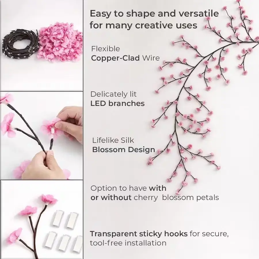 96led Cherry Blossom Vine Light, Flexible LED Branch Lamp, 8 Flash Modes, USB Powered, Ideal for Bedroom, Living Room, Party, Wedding Decor