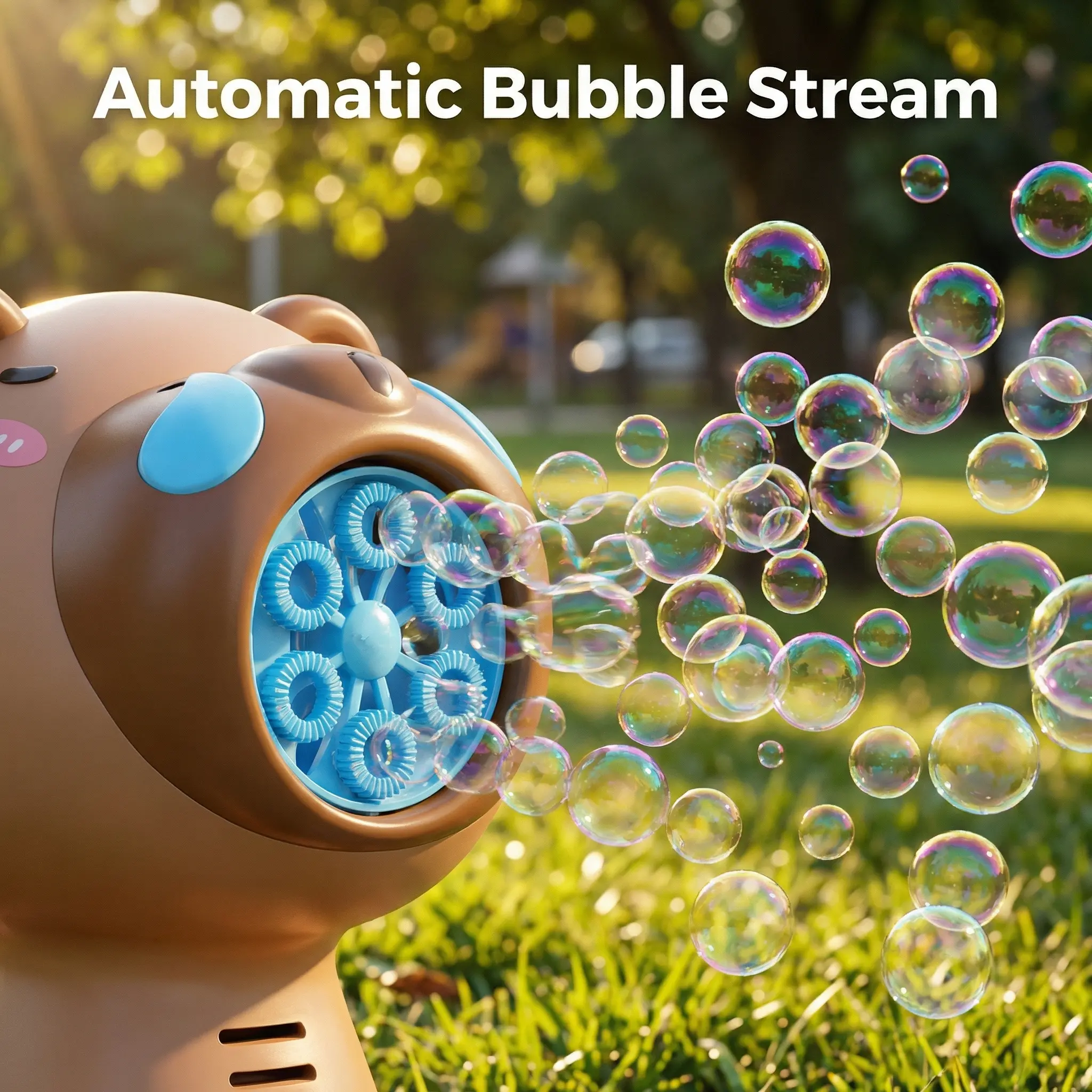 Pink Bubble Machine Blower Maker Toy Christmas Basket Stuffers Outdoor Summer Girls Kids Birthday Best Gift for 3-9 Year Old Capybara Cute Valentines Day Gifts