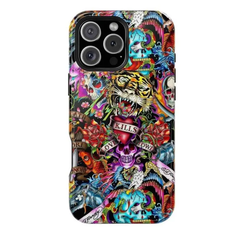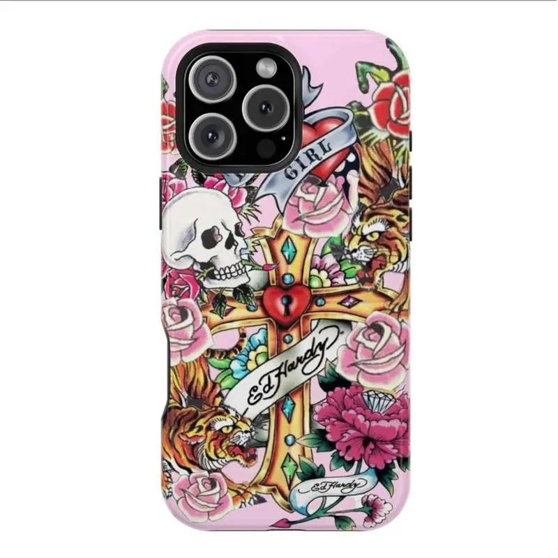 Ed Hardy Skull Leopard iPhone Case Aesthetic Y2k Phone Case Retro Tattoo Vibes Cover for iPhone 17 16 15 14 13 12 11