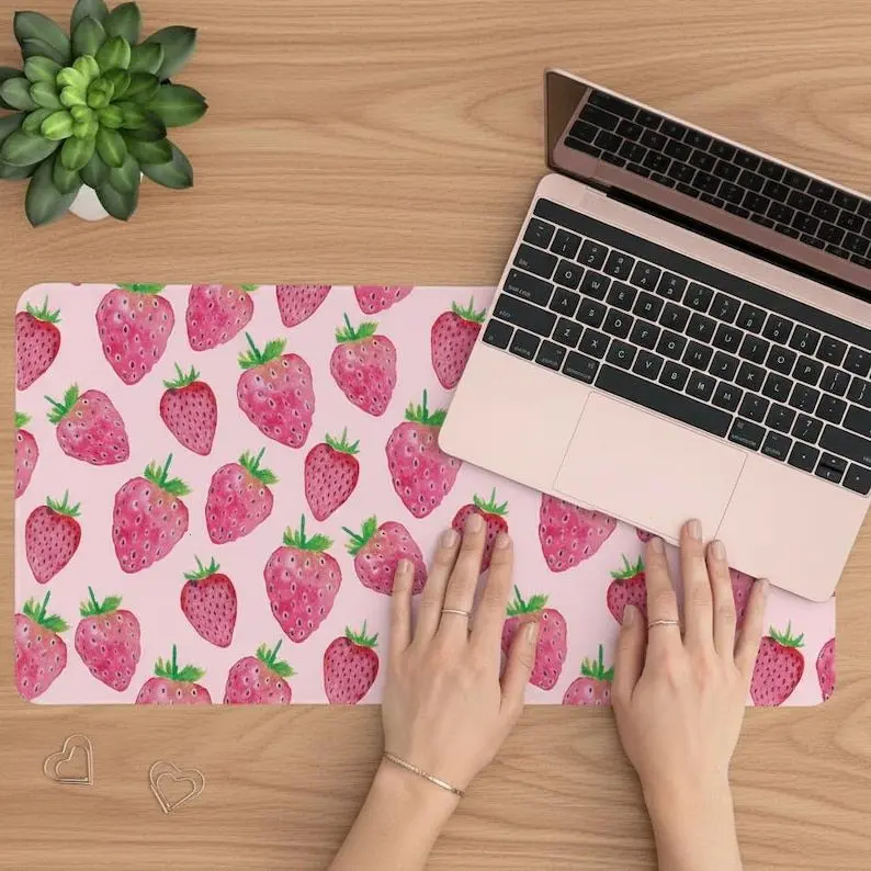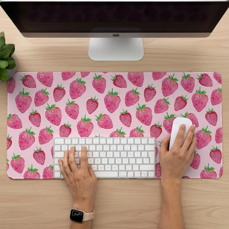 [SALE UP TO 50% + FREE SHIP] Pink Strawberry Desk Mat, Desk Pad, Extra Large Mousepad, Soft Anti-slip desk mat, table mat, Computer Playmat