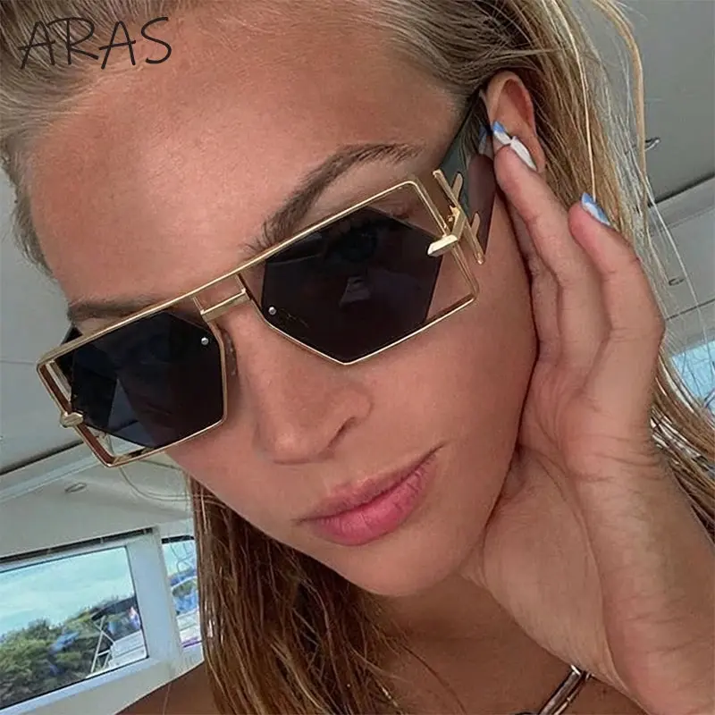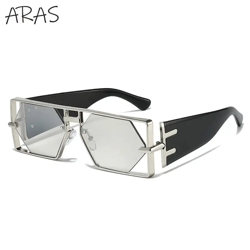 Steampunk Rectangle Sunglasses Hexagon Hollow Metal Vintage Frame Luxury Eyewear UV400 Shades