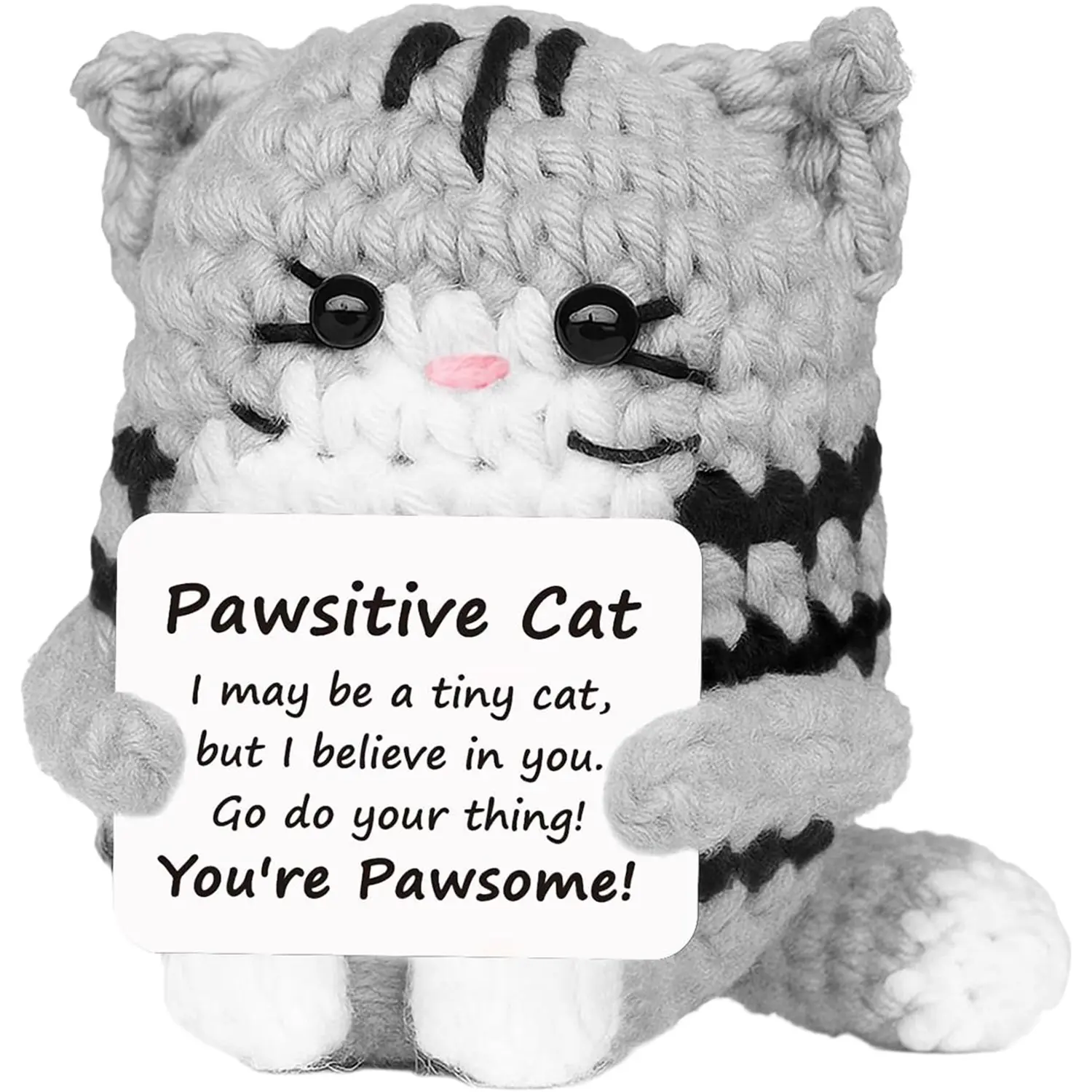 Positive Crochet Cat Mini Handmade Emotional Support Cheer Up Gifts, Cute Funny Knitted Kitten Decor for Women, Men, Friends, Mom, Daughter, Son & Teens, Ideal Birthday, Mothers Day & Graduation Keepsake Presents to Encourage and Warm Heart