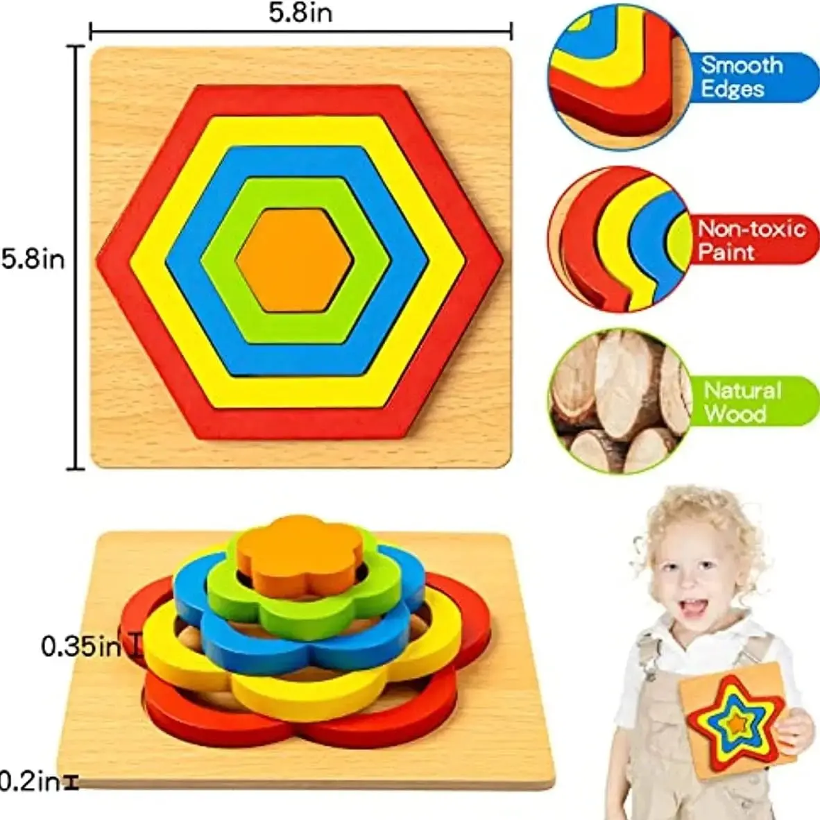 Choose from multiple shape options, including circle, triangle, square, star, and flower. Each variant includes one individual wooden puzzle, allowing you to select your child’s favorite or collect multiple for a full set.